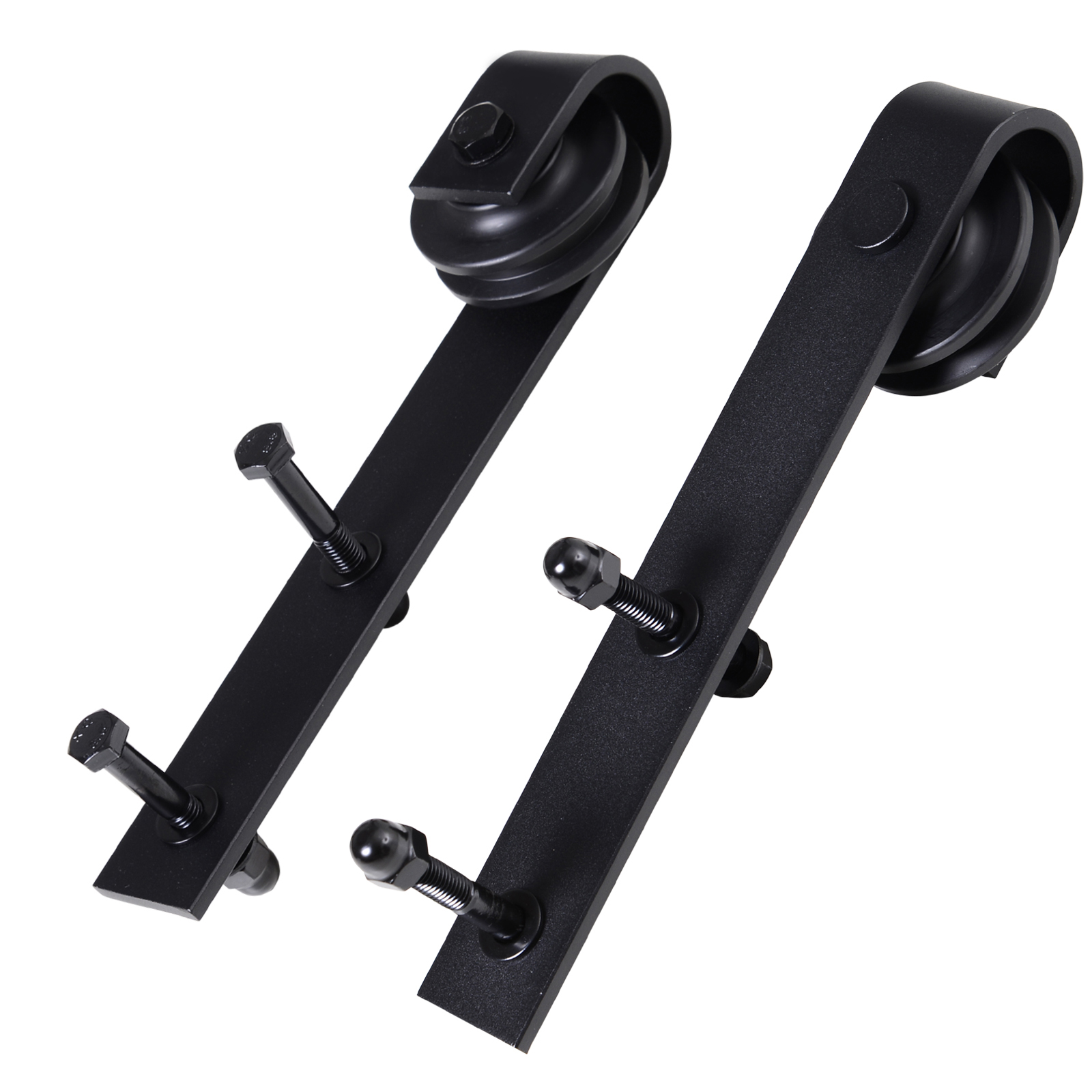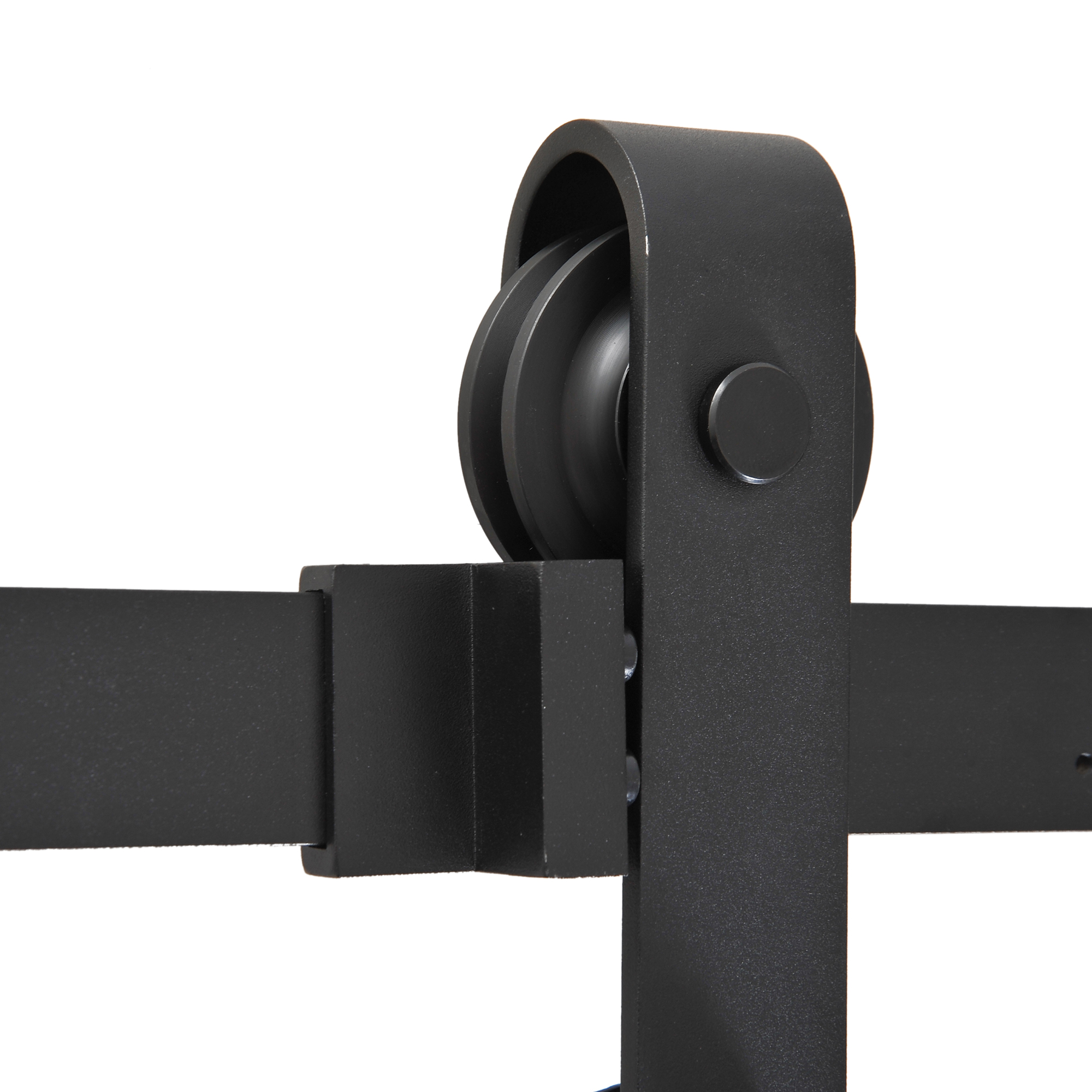 2cm Binario per Porta Scorrevole Kit Accessori con Binario e Rulli Tappi in Stile Rustico Portata 90kg Acciaio al Carbone Nero
