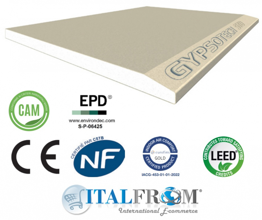 Lastra Gypsotech STD base per normale utilizzo ( Tipo A secondo EN 520 ).