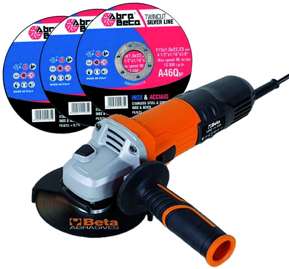 Abra Beta KIT 300 DISCHI INOX /FERRO mm 115×1,6 + SMERIGLIATRICE ANGOLARE 115 mm. 750 W