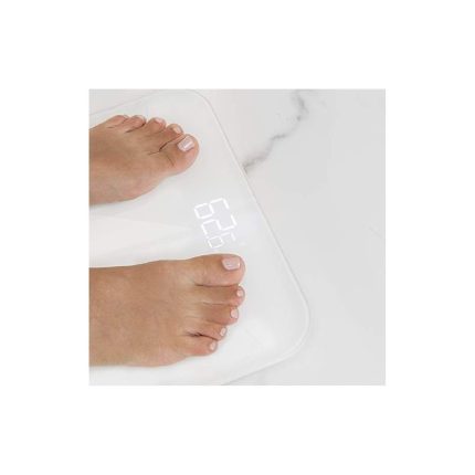 Cecotec Bilancia pesapersone con funzione di bioimpedenza, connessione Bluetooth e superficie in vetro temperato. SmartBlue: connessione con Smartphone tramite Bluetooth 4.0 per un rilevamento automatico dei parametri nella App per misurare e consultare l’evoluzione dei parametri ottenuti dopo la misurazione. TenBIA: metodo di misurazione di Impedenza Bioelettrica (BIA) con analisi corporea completa, con misurazione precisa di 10 parametri: peso, grasso corporeo, indice di massa corporea, massa muscolare, ossea, età corporea, acqua, grasso viscerale, metabolismo di base e valutazione della condizione fisica. Dispone di un ampio margine di misurazione, da 5 kg (11 lb) fino a 180 kg (400 lb) con precisione di 100 g (0,2 lb) per aumentare la sua affidabilità. Funzione BabyWeight che permette di conoscere il peso dei bambini mantenendo la stessa precisione. Bilancia pesapersone digitale di grande superficie da 300 x 300 mm più comoda da usare durante le misurazioni. Piattaforma extra-sottile in vetro temperato ad alta sicurezza con rivestimento in ossido di indio e stagno per un design che si adatta a qualsiasi stanza. FourPrecision: alta precisione di misurazione grazie ai suoi quattro sensori di ultima generazione che permette di ottenere dati precisi. Include metro per un controllo dell’evoluzione volumetrica in modo semplice e facile. Multifunzione Easy Usability. Facile uso grazie alla funzione di autospegnimento, accensione rapida e semplice, indicatore di sovraccarico e indicatore della batteria. Display LED di grandi dimensioni per un design più estetico e una lettura del peso facile adatta a qualsiasi stanza,. SafeGrip: quattro appoggi in silicone che facilitano la presa al pavimento fornendo grande sicurezza. Tasto per una conversione facile del peso da Kg a Lb.