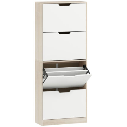 Scarpiera Salvaspazio Slim a 4 Cassetti per 20 Paia di Scarpe 62,5x26x156 cm, color Legno e Bianco