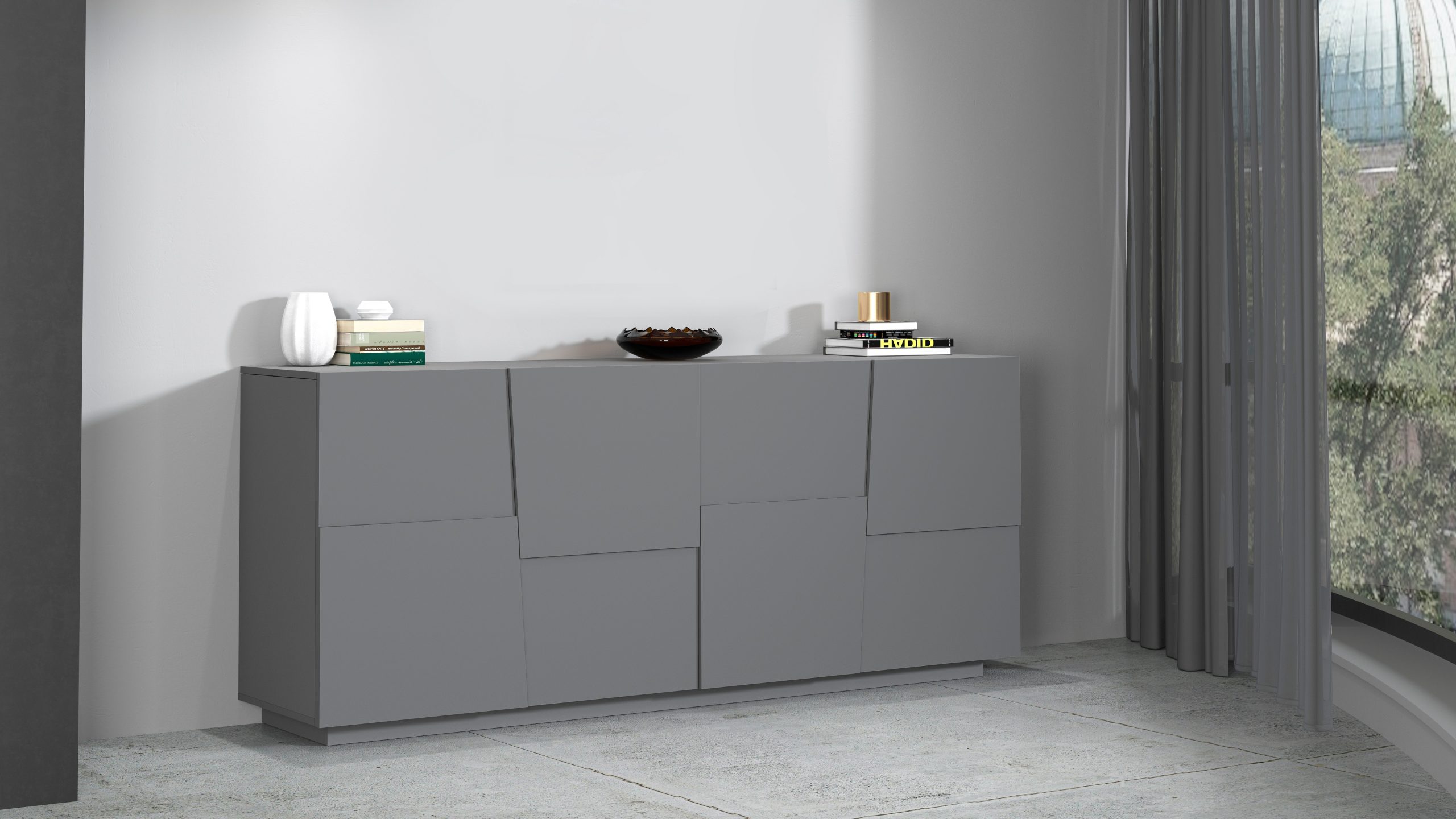 La credenza PONGO a 4 ante da 200 cm, è un complemento d’arredo originale ed elegante, utile per abbellire la zona living ed è disponibile nei raffinati colori bianco laccato, rovere wotan e antracite opaco. Con il suo stile ricercato e la qualità 100% Made in Italy, questo mobile risponde all’esigenza di chi deve ottimizzare bene lo spazio.