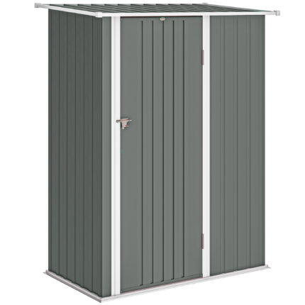 Capanno Porta Attrezzi in Metallo con Tetto Inclinato e Porta Bloccabile, 142x86x189 cm, Grigio Chiaro