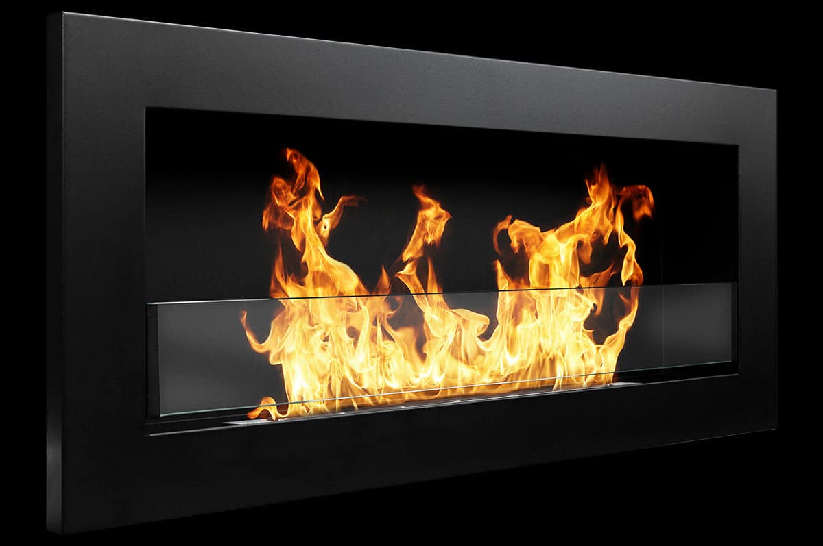 Camino a bioetanolo da parete o incasso Livorno Nero L 90 x P 12 x H 40 con vetro