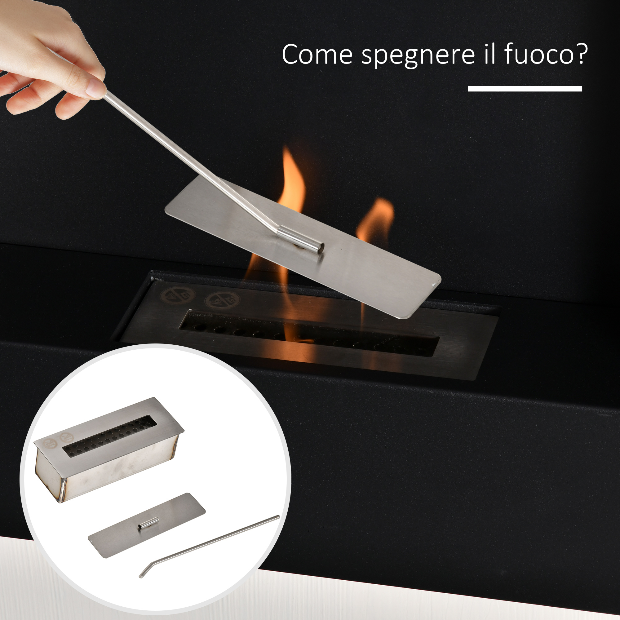 Camino Bioetanolo da Parete con Serbatoio da 0,7L e Copertura 20m², Acciaio, 72x11x72cm, Argento e Nero