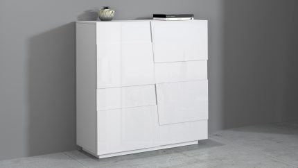 La madia alta PONGO con 4 ante si distingue per il suo design unico e originale, che unisce estetica e