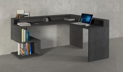 La scrivania Esse angolare con sopralzo è la soluzione di design migliore per ottimizzare lo spazio con stile. Unendo un’elegante