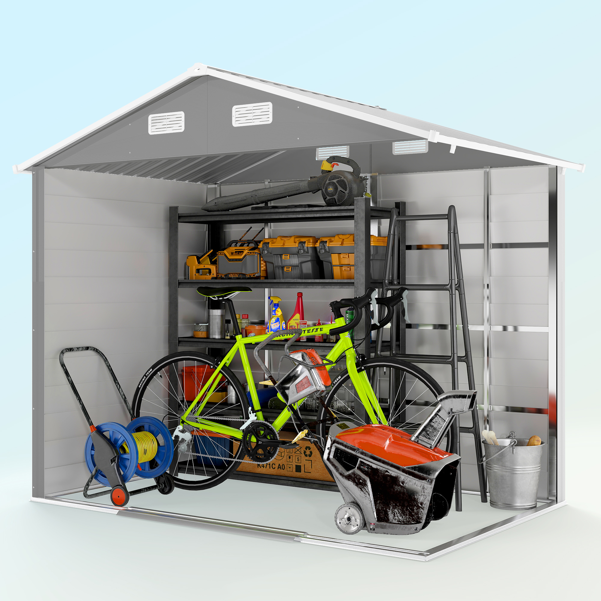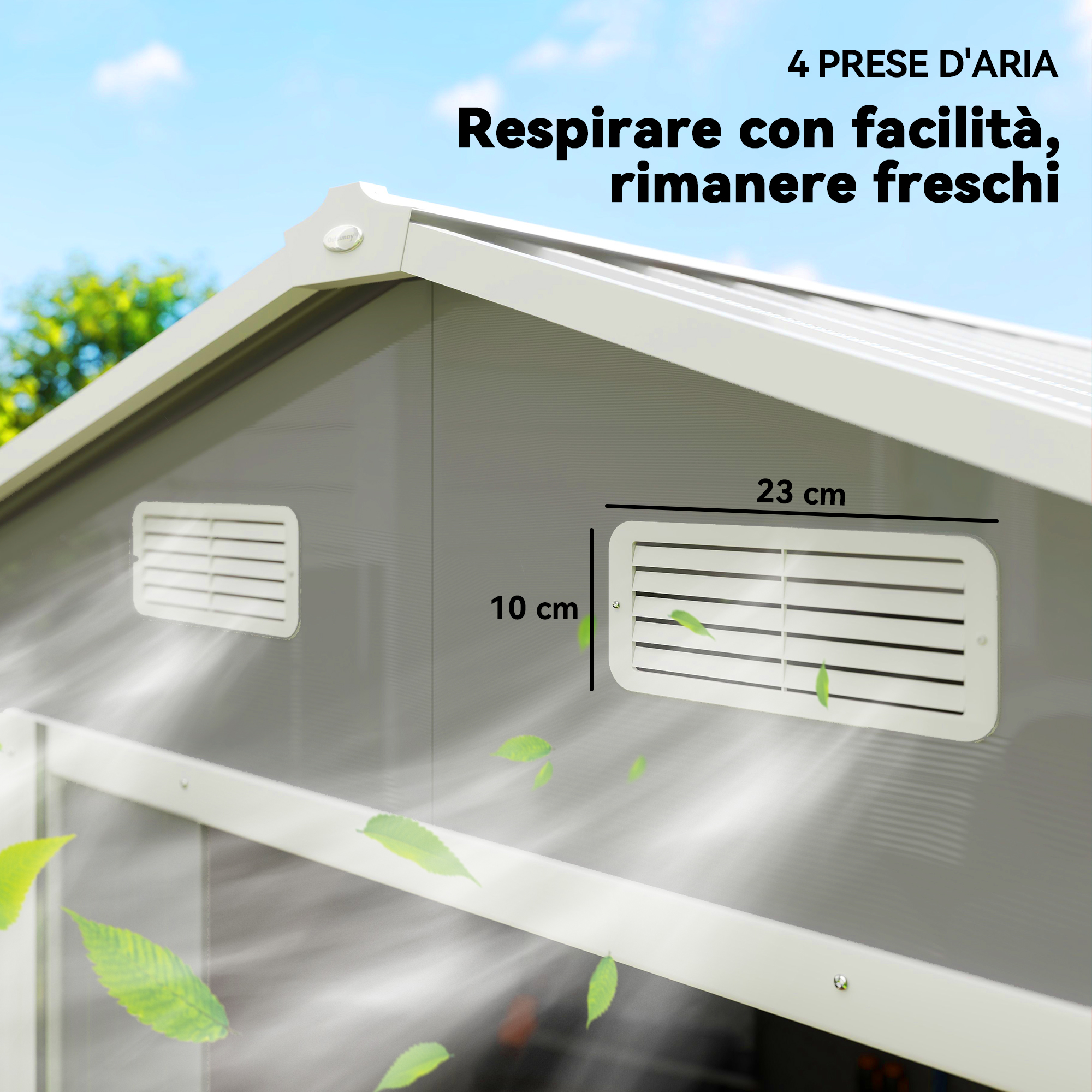Casetta porta Attrezzi con Porte Scorrevoli e 4 Prese d’Aria, in Acciaio e PP 196x236x208 cm, Grigio Chiaro