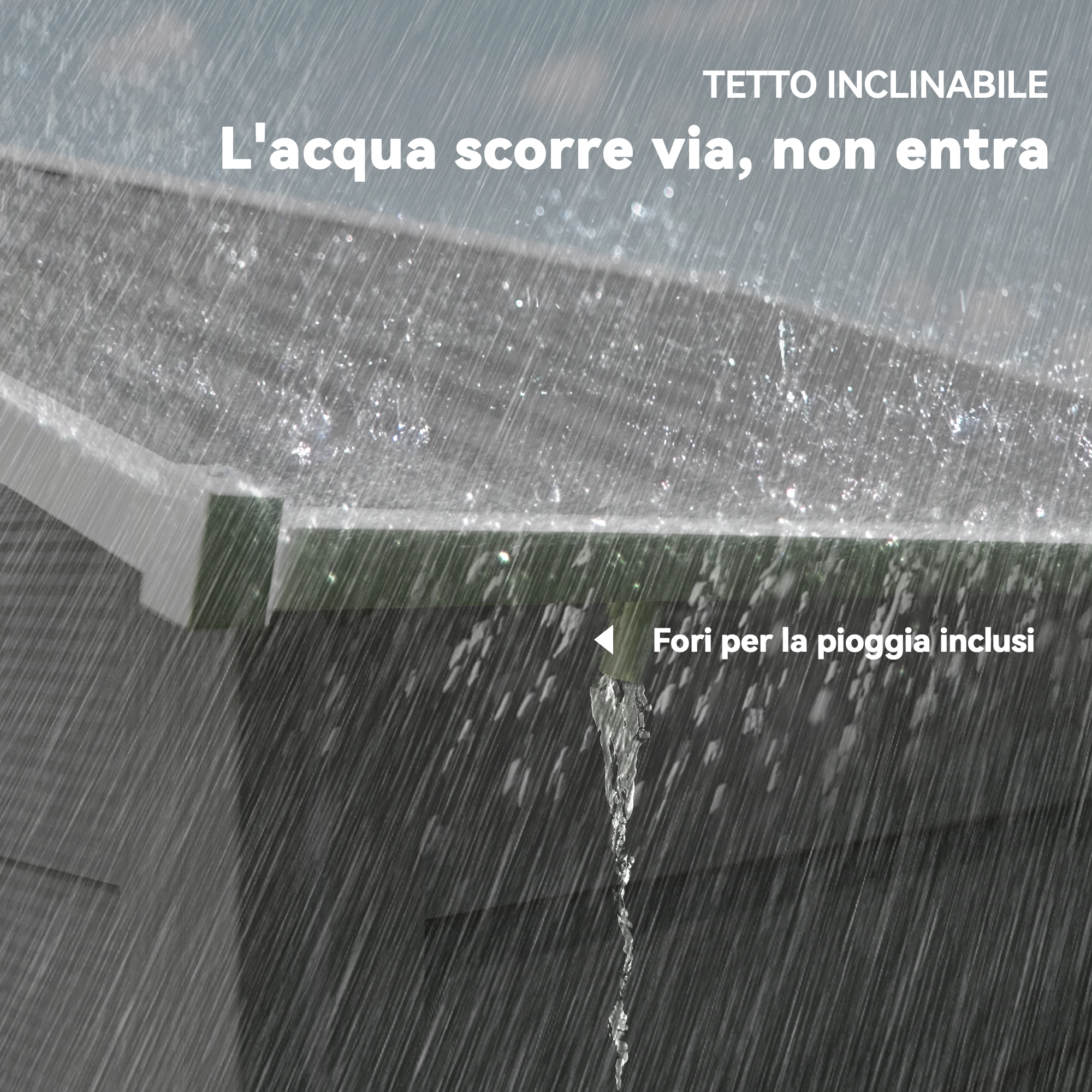 • • Casetta porta attrezzi con rivestimento protettivo sui pannelli per garantire una lunga durata