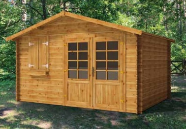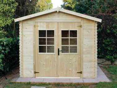 casetta tavole a collegamento angolare , 28 mm, in legno douglas, senza pavimento, copertura tetto lamiera acciaio, garanzia 5 anni 3,0 x 3,0 m – peso 620kg ; h 2,35m