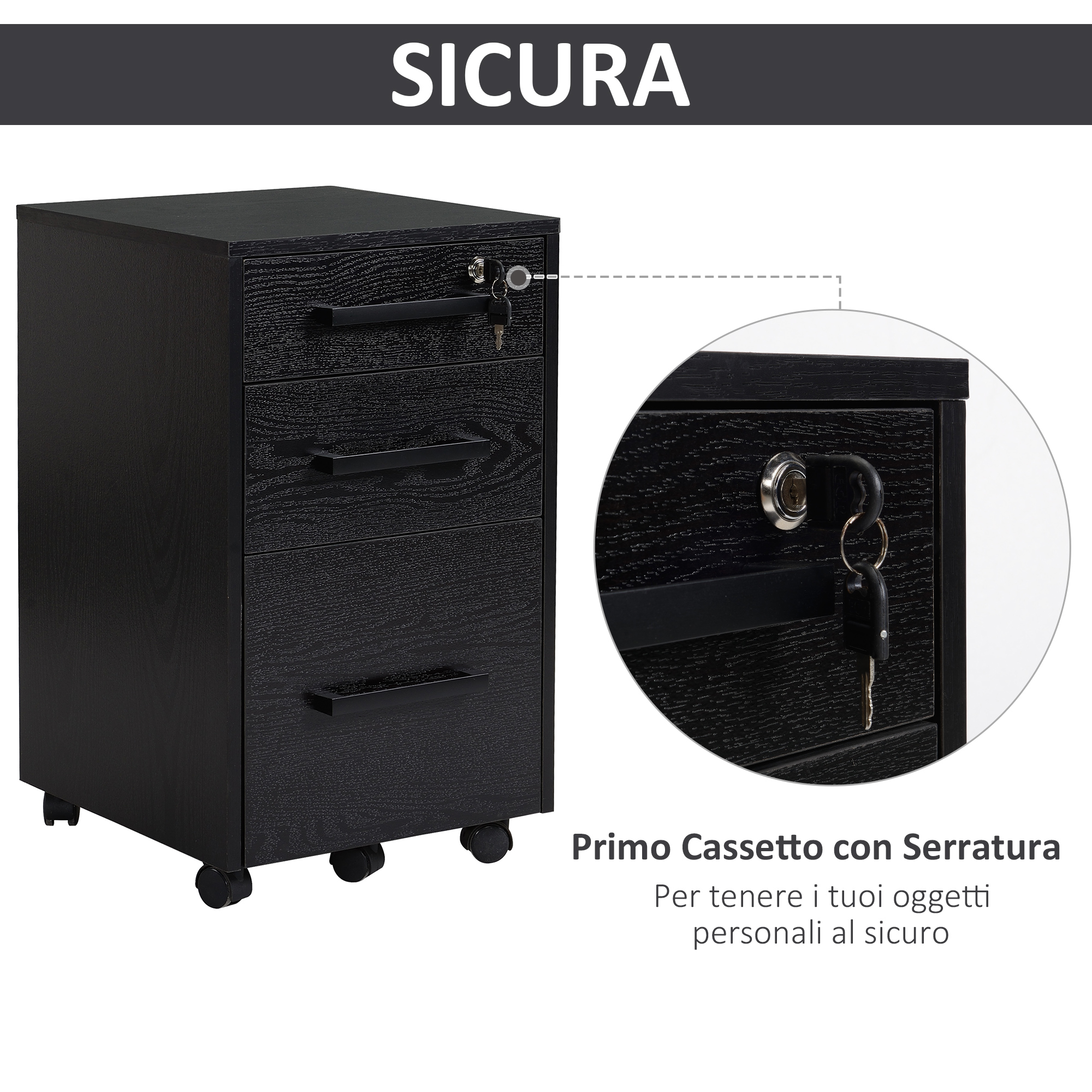 Cassettiera Portadocumenti da Ufficio Schedario con 3 Cassetti e Serratura, in Legno, Nero, 39,2 x 40 x 65,4cm