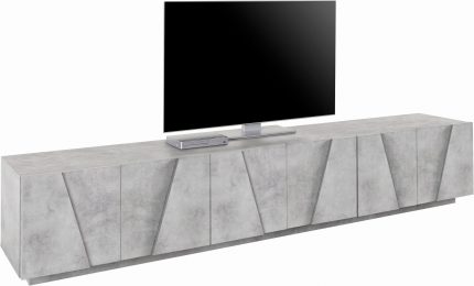 Il porta tv PING da 240 cm si distingue per le dimensioni ampie e per il design unico, sobrio e