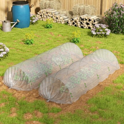 Telo di Copertura Piante a Rete con Archetti Flessibili e Clip di Fissaggio, Bianco