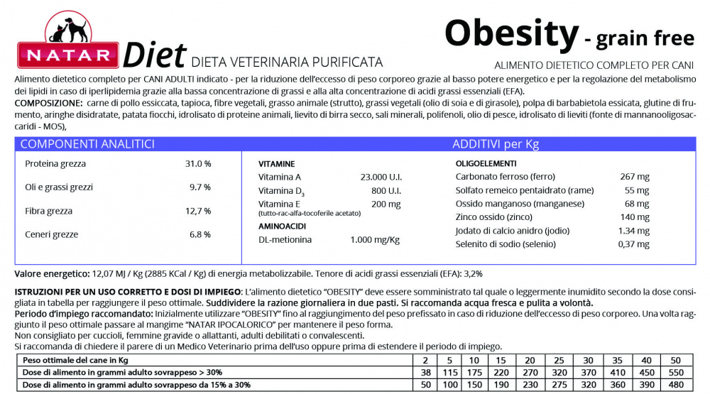 DIET OBESITY CANE – GRAIN FREE CONFEZIONE:1,5 kg|TAGLIA:S