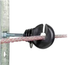 Il seguente prodotto appartiene alla famiglia degli isolatori. Per realizzare una recinzione elettrica efficace e durevole è indispensabile utilizzare gli isolatori giusti. I fili conduttori della recinzione devono sempre essere ben tesi e questo è possibile solo se si utilizzano pali adeguati, saldamente piantati nel terreno e robusti isolatori di testa e d’angolo. Gli isolatori di linea devono essere facili da installare, durevoli e costruiti in modo da non danneggiare i fili o i nastri. Tutti gli isolatori da noi proposti per filo, corda e nastro sono utilizzabili su tondini di ferro e pali in legno, plastica e metallo. Quando si vuole aggiungere fili elettrici ad una staccionata o ad una rete metallica è indispensabile utilizzare igli isolatori distanziatori. Questo evita che i fili conduttori, toccando i pali in legno o la rete metallica, creino forti dispersioni che rendono la recinzione inefficace.