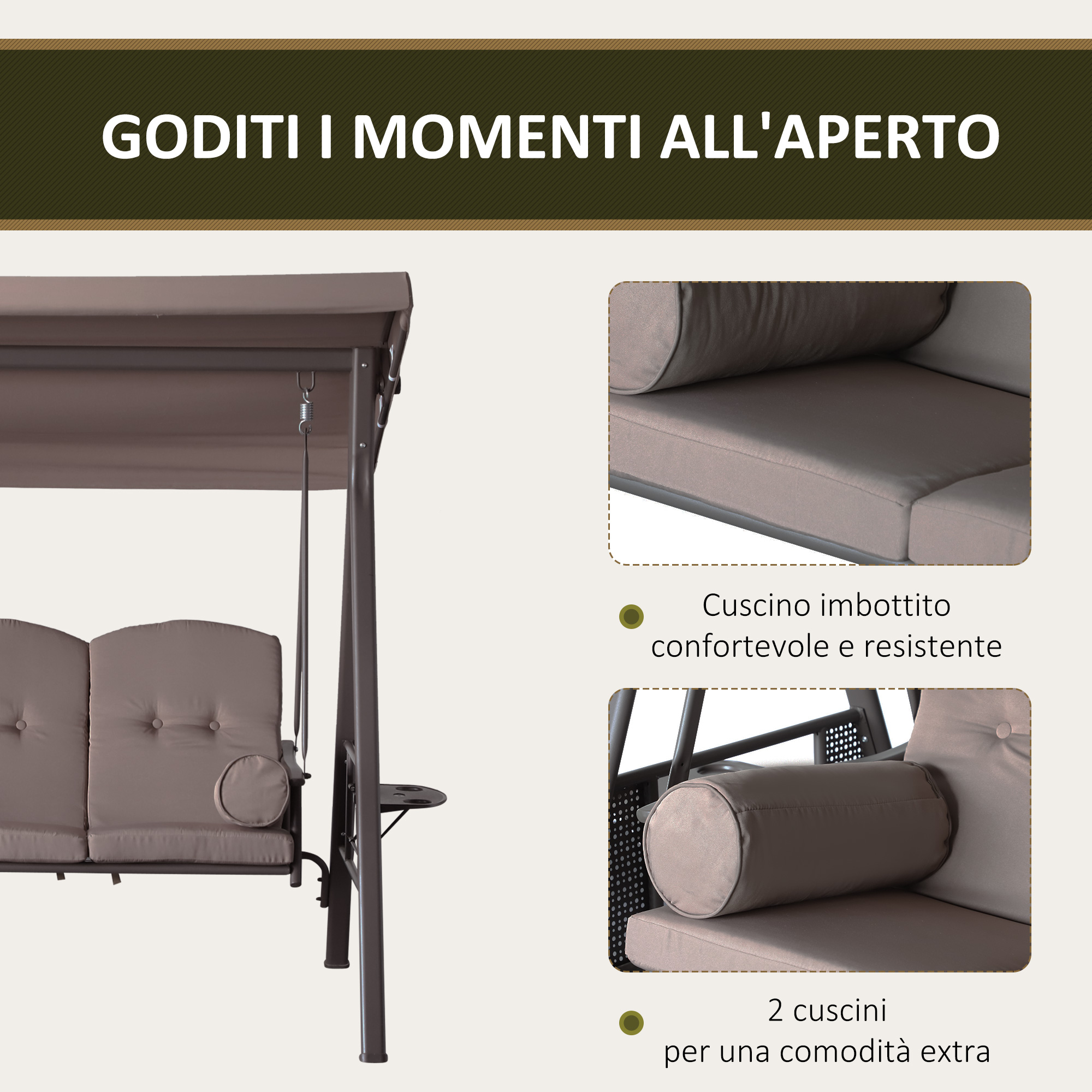 Rilassati e divertiti in compagnia sul nostro dondolo da giardino [ITALFROM HOME DESIGN], La struttura a 3 posti è realizzata in metallo verniciato a polvere, con un tettuccio in poliestere inclinabile per garantire maggiore ombra, Il dondolo da esterno è dotato di 2 tavolini laterali con portabicchieri, perfetti per avere drink e accessori a portata di mano, La seduta imbottita e i due cuscini rotondi aggiuntivi assicurano un comfort ottimale, per rilassarti all’aperto ogni volta che vuoi,
