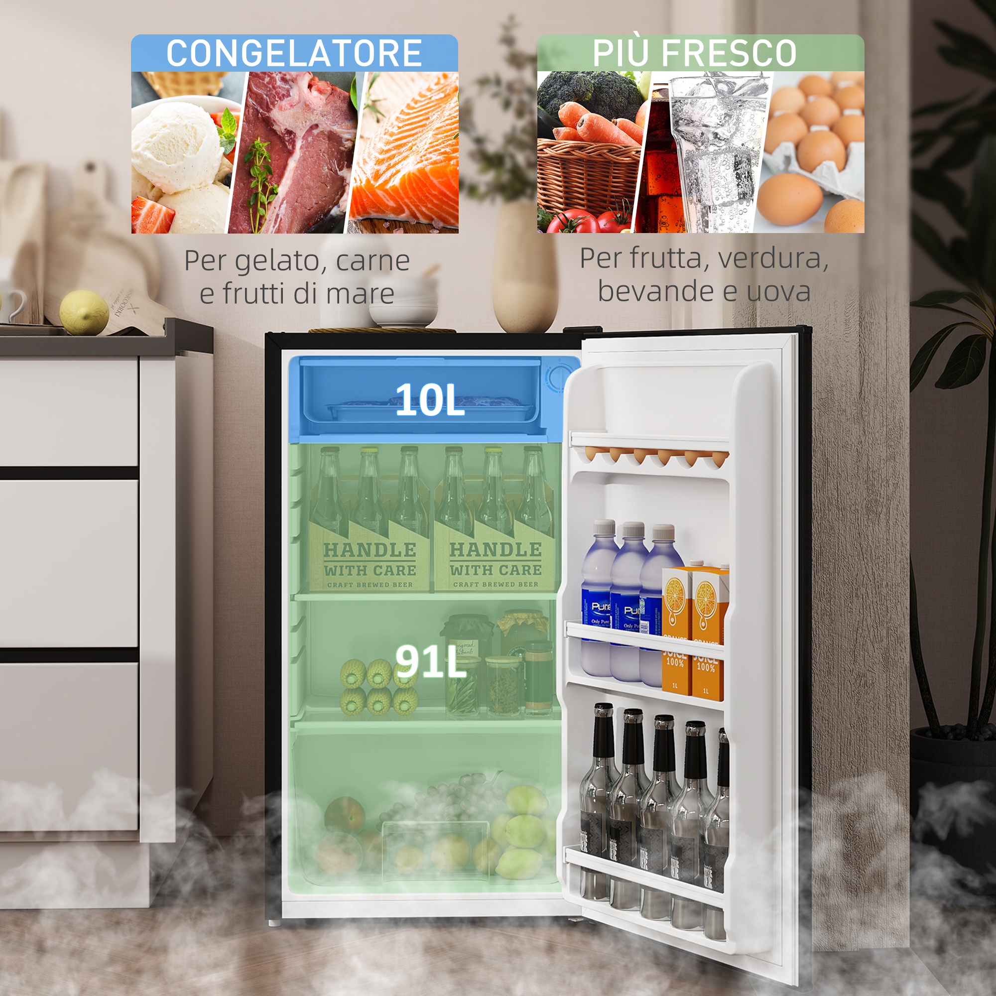 Frigorifero Piccolo 91L MonoPorta Reversibile con Congelatore e Temperatura Regolabile, Nero