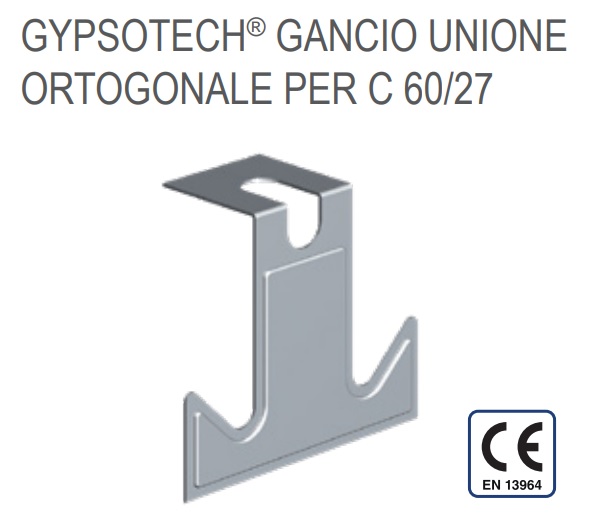 Prodotto realizzato in acciaio zincato utilizzato nelle controsoffittature a doppia struttura, serve da aggancio e blocco fra la struttura primaria e quella secondaria con profilo montante C 27/60/27 a bordo arrotondato.