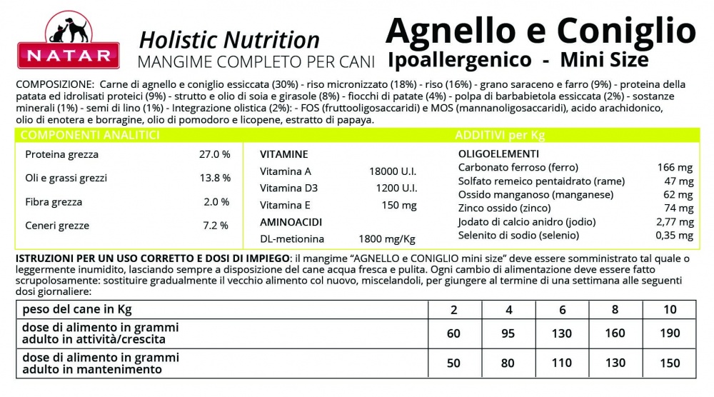 HOLISTIC NUTRITION MINI ADULT DOG – AGNELLO E CONIGLIO – IPOALLERGENICO CONFEZIONE:10 kg
