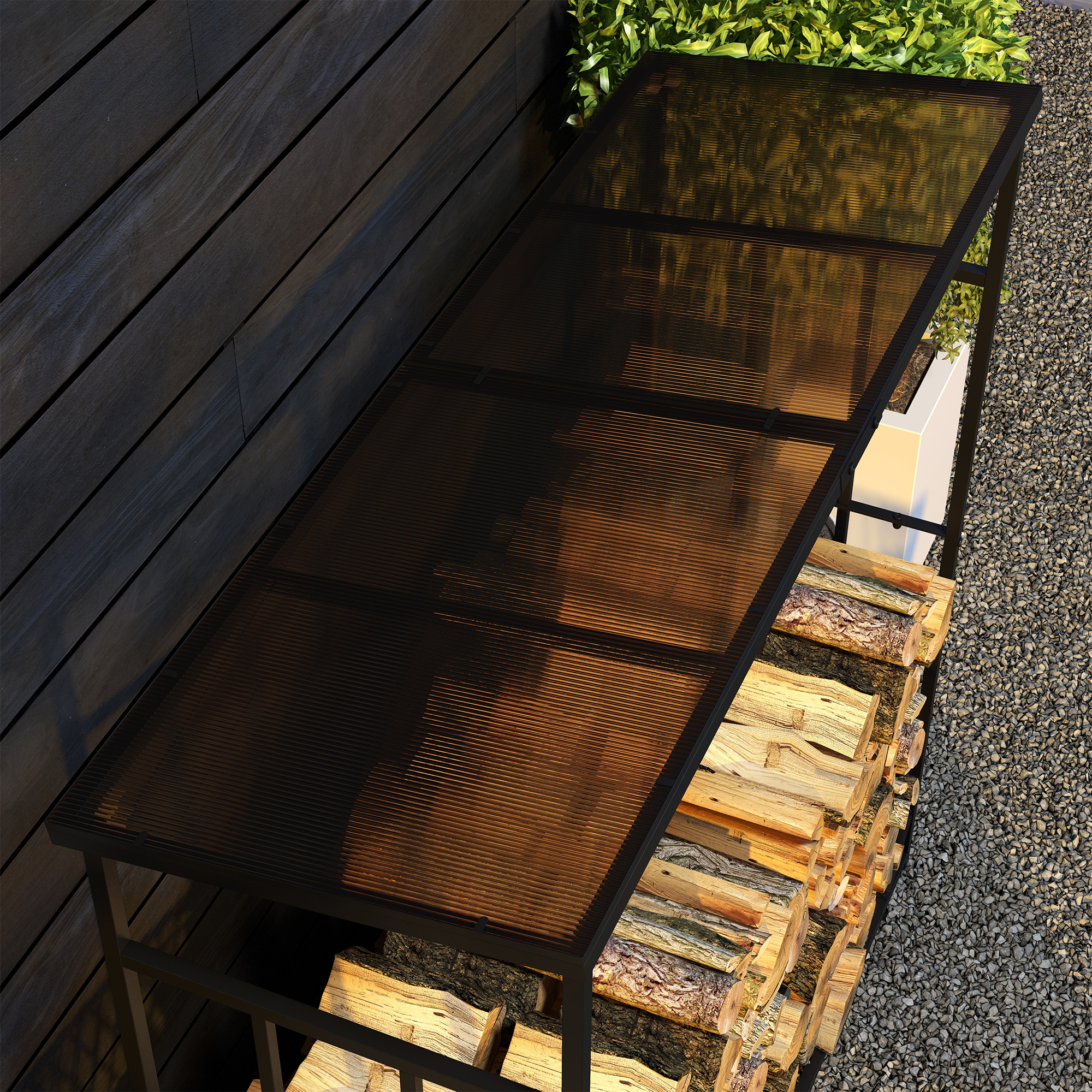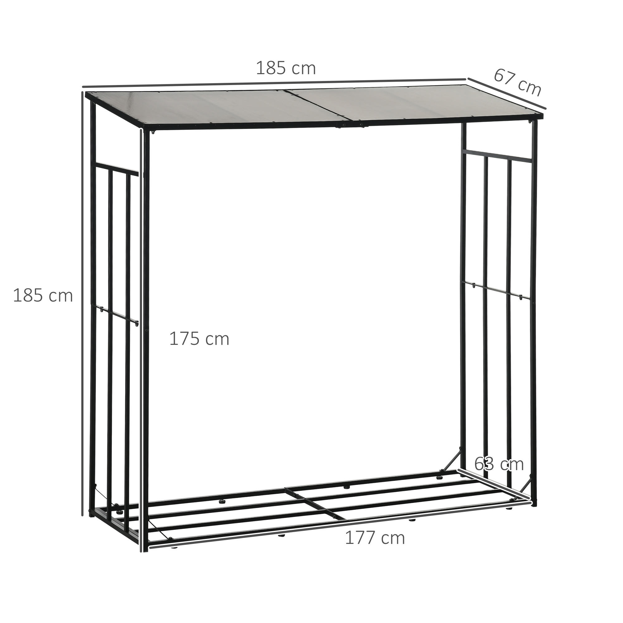 Legnaia da Esterno in Metallo con Tetto in Policarbonato, Capacità 21kg, 185x67x185, Nero