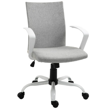 Sedia da Ufficio Ergonomica a Dondolo, Sedia da Studio Girevole, Poltrona Scrivania con Altezza Regolabile in Tessuto, 61x61x89-99 cm, Grigio Chiaro
