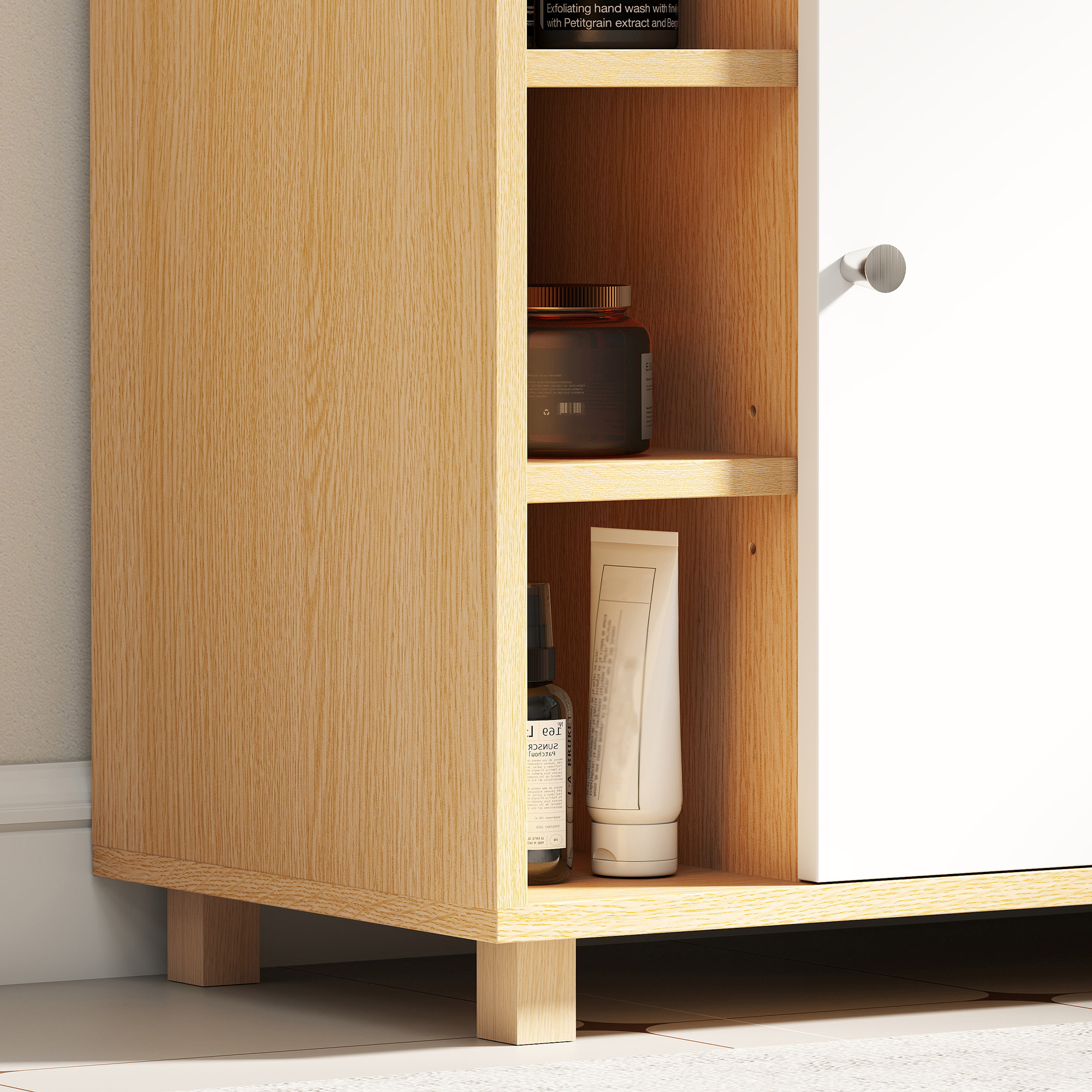 Il tuo bagno è disordinato e non riesci a sfruttare al meglio lo spazio? Il mobile sottolavabo [ITALFROM HOME DESIGN] sfrutta proprio quell’angolo difficile da usare, offrendo un un armadietto pratico e 6 ripiani aperti, Le ante soft-close garantiscono un chiusura silenziosa mentre i ripiani interni regolabili assicurano spazio per oggetti di ogni dimensione,