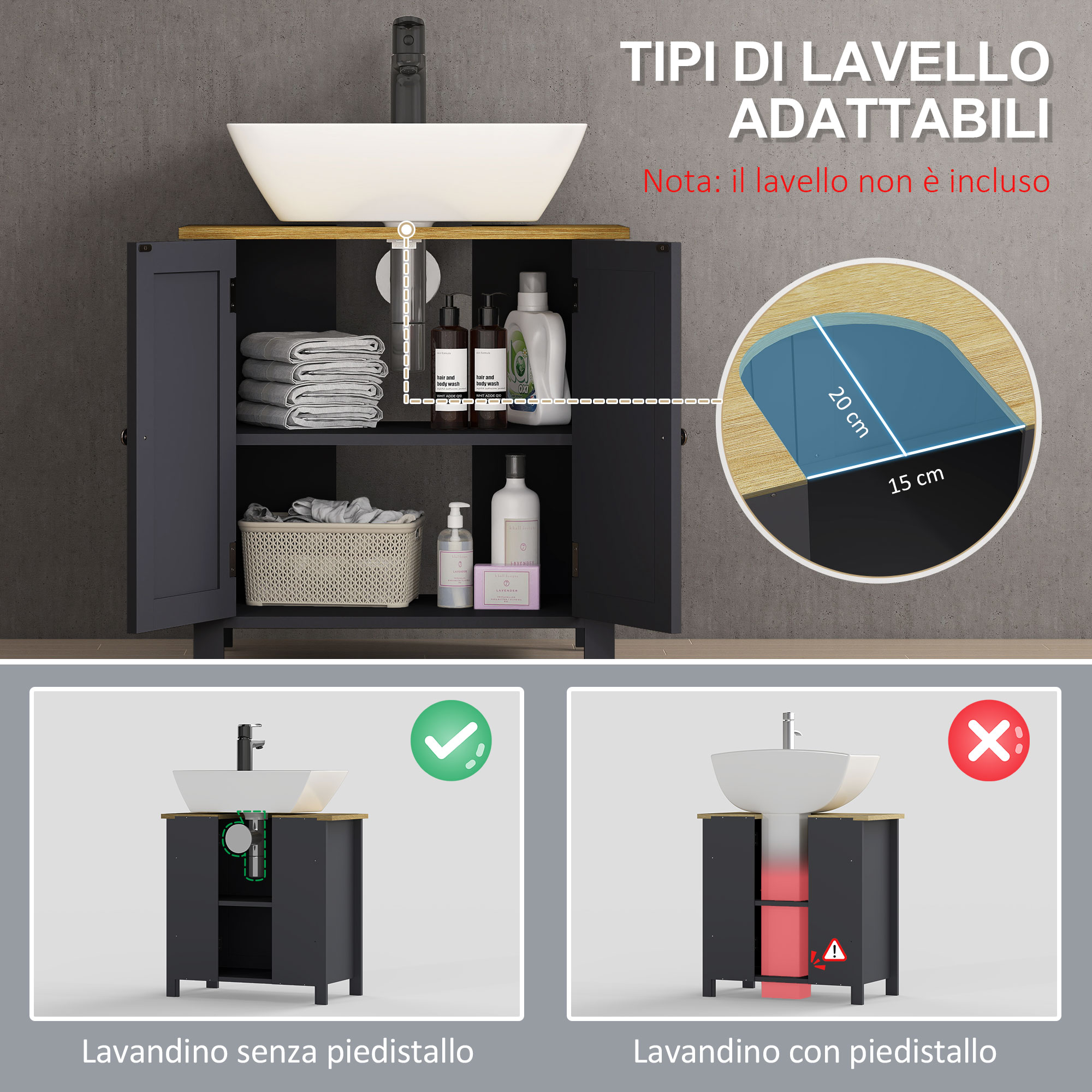Mobile Sottolavabo in Truciolato e MDF a 2 Ante con Ripiano Interno Regolabile, 60x30x60 cm, Grigio