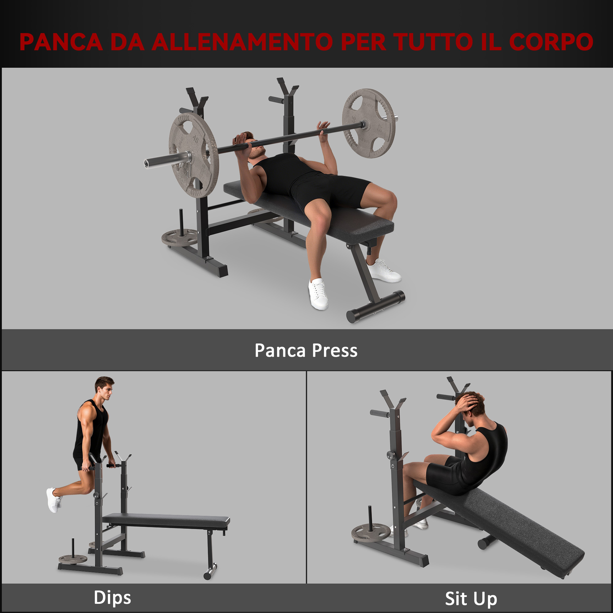 Questa panca pesi con rack è l’ideale per chi desidera tonificare e mantenere la massa muscolare, È dotata di un rack per bilancieri, una panca per il sollevamento e una stazione per le trazioni, rivelandosi un’ottima opzione per allenare tutto il corpo direttamente a casa, I tubi d’acciaio rendono la panca per pesi robusta e stabile, mentre i portapesi a piastra tengono il peso a portata di mano, Prova questa panca per sollevamento pesi [ITALFROM HOME DESIGN] e costruisci il corpo dei tuoi sogni,