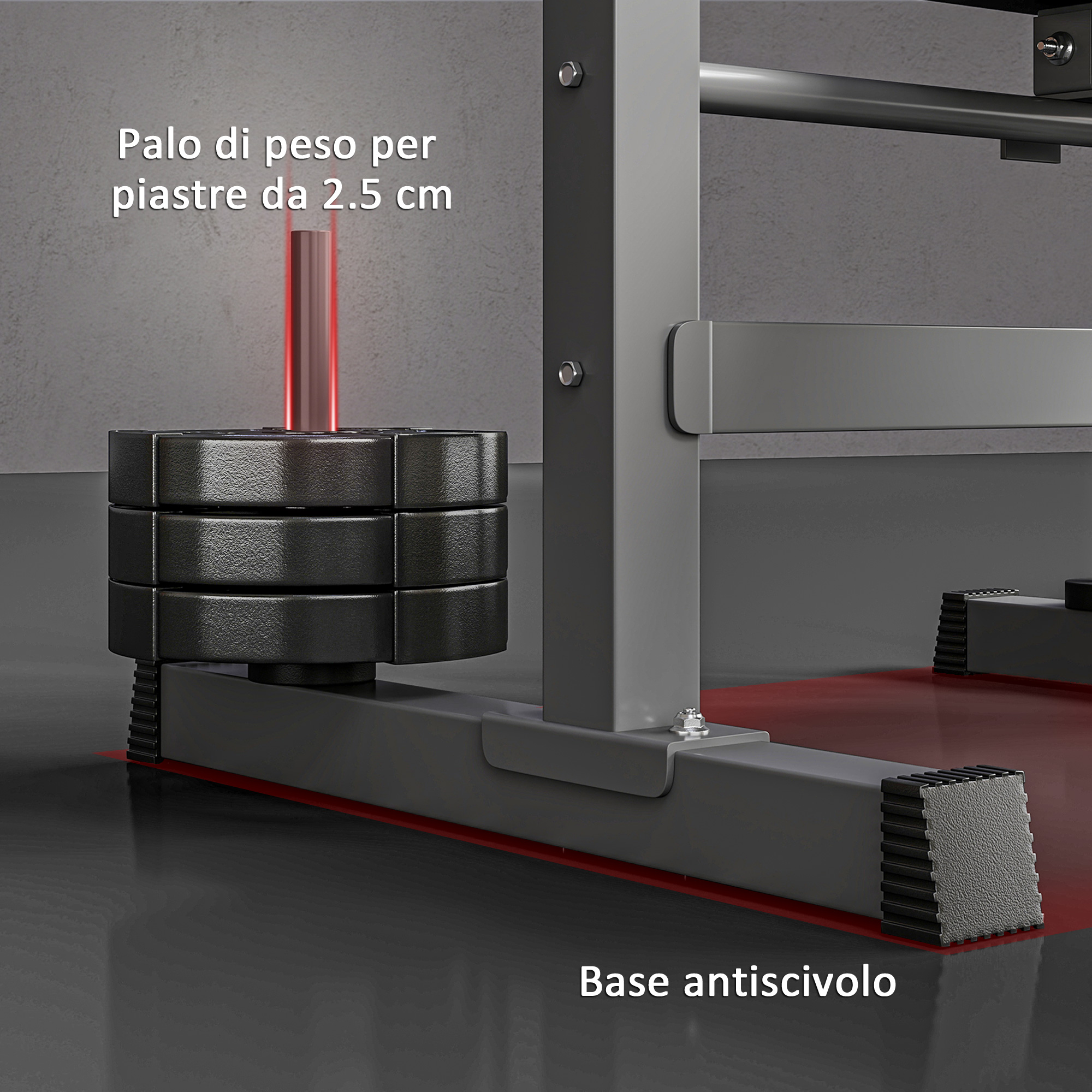 - • Rack porta bilanciere regolabile su 8 livelli per adattarsi a diverse esigenze
