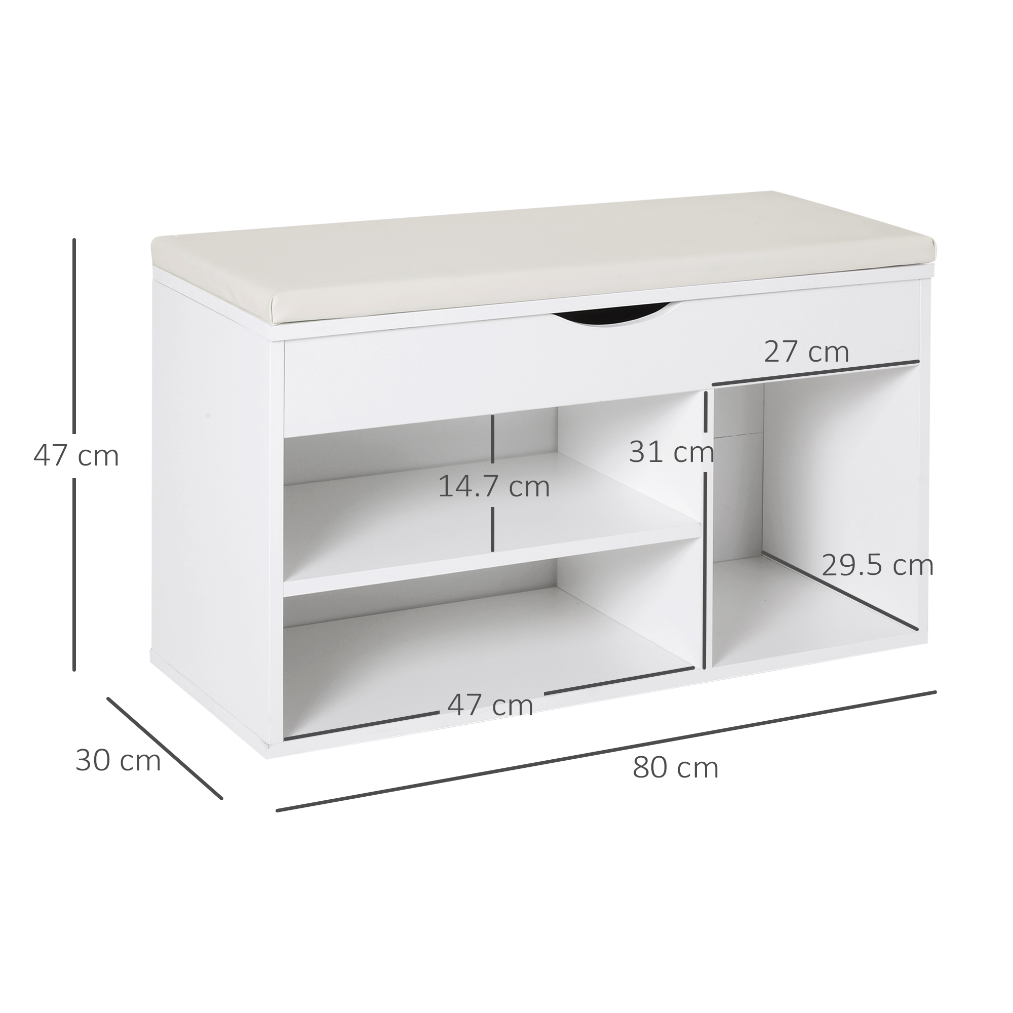 Panca Scarpiera, Mobile Portascarpe Salvaspazio con Sedile Imbottito Ribaltabile da Ingresso Legno, 80x30x47cm, Bianco