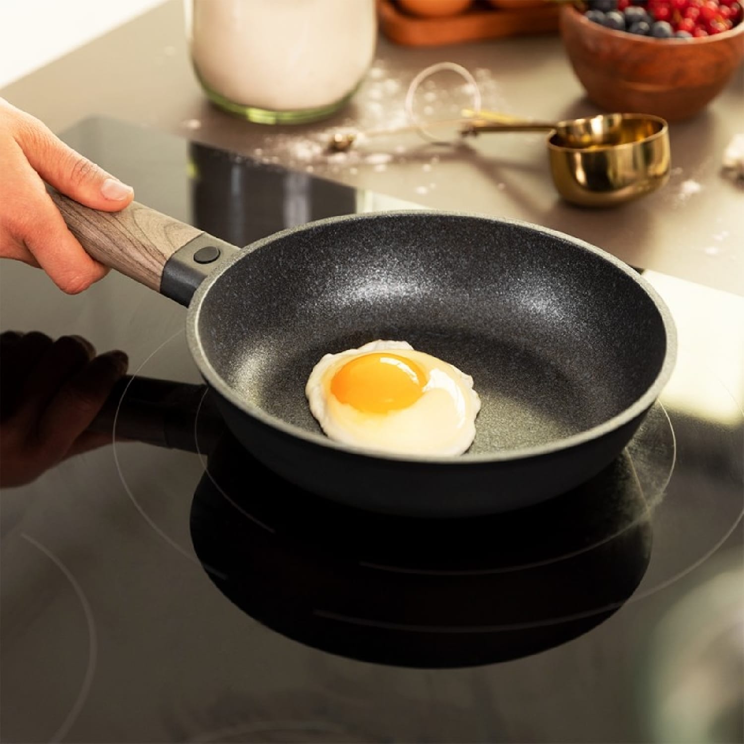 Set di padelle Polka Excellence 18-22-26 Bucket Set Force Padelle da 18-22-26 cm cm di diametro Elaborate in alluminio fuso di alta qualità resistente alle deformazioni. Rivestimento antiaderente 100% privo di PFOA e rispettoso dell’ambiente, Profile Teflon® Nonstick Coating. Lavabile in lavastoviglie. Adatta a ogni tipo di cucina inclusa a induzione. Fondo diffusore “Full induction” EcoHeat che permette distribuire il calore in modo più efficiente risparmiando energia. Base indeformabile di 5 mm di spessore, composto da 6 strati per una maggiore resistenza. Piastre a induzione da 117 mm, 143 mm e 162 mm.