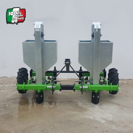 Una macchina polifunzionale, interamente in acciaio, utile per ogni trattore con potenza compresa da 12 a 25 Hp. La piantapatate PL 100 si presenta quale prodigio di versatilità in ogni campo utile per la semina con bulbo: patate, aglio ed ogni tipo di tubero è seminato con precisione e velocità tali da renderlo, dopo averlo visto in azione, un attrezzo da lavoro indispensabile per chi si appresti la tale tipologia di semina. I plus della PL 100 di Giemme Machinery sono semplici ed intuitivi da individuare dopo averla vista al lavoro, ma elencarne qualcuno aiuterà a comprendere meglio la bellezza di questa macchina. Le sue dimensioni compatte, infatti, ne riducono l’ingombro ma non l’efficienza: basti pensare alla capacità di tramoggia da 50 kg, le ruote in gomma, la possibilità di poter regolare la distanza di semina, l’assolcatore regolabile in altezza per stabilire a quale profondità nel terreno debba essere piantato il bulbo, dischi posteriori regolabili in larghezza e molte altre peculiarità.