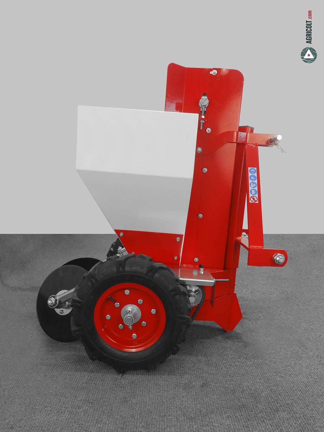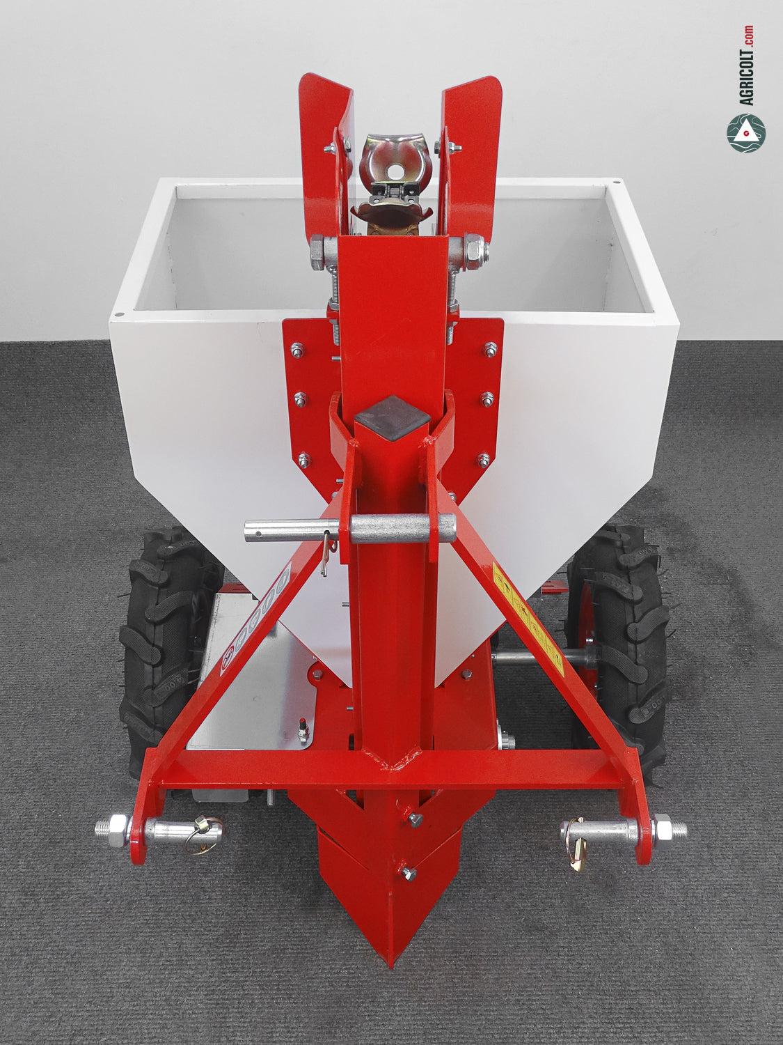 L’assolcatore della piantapatate PL100 è regolabile in altezza per favorire la migliore regolazione in profondità della semina per le più specifiche esigenze. E’ noltre dotata di attacco a tre punti di Cat. I, sotto il quale il vomere è collocato per tracciare il solco all’interno del quale il bulbo viene sistemato con estrema precisione direttamente da un sistema a palette.