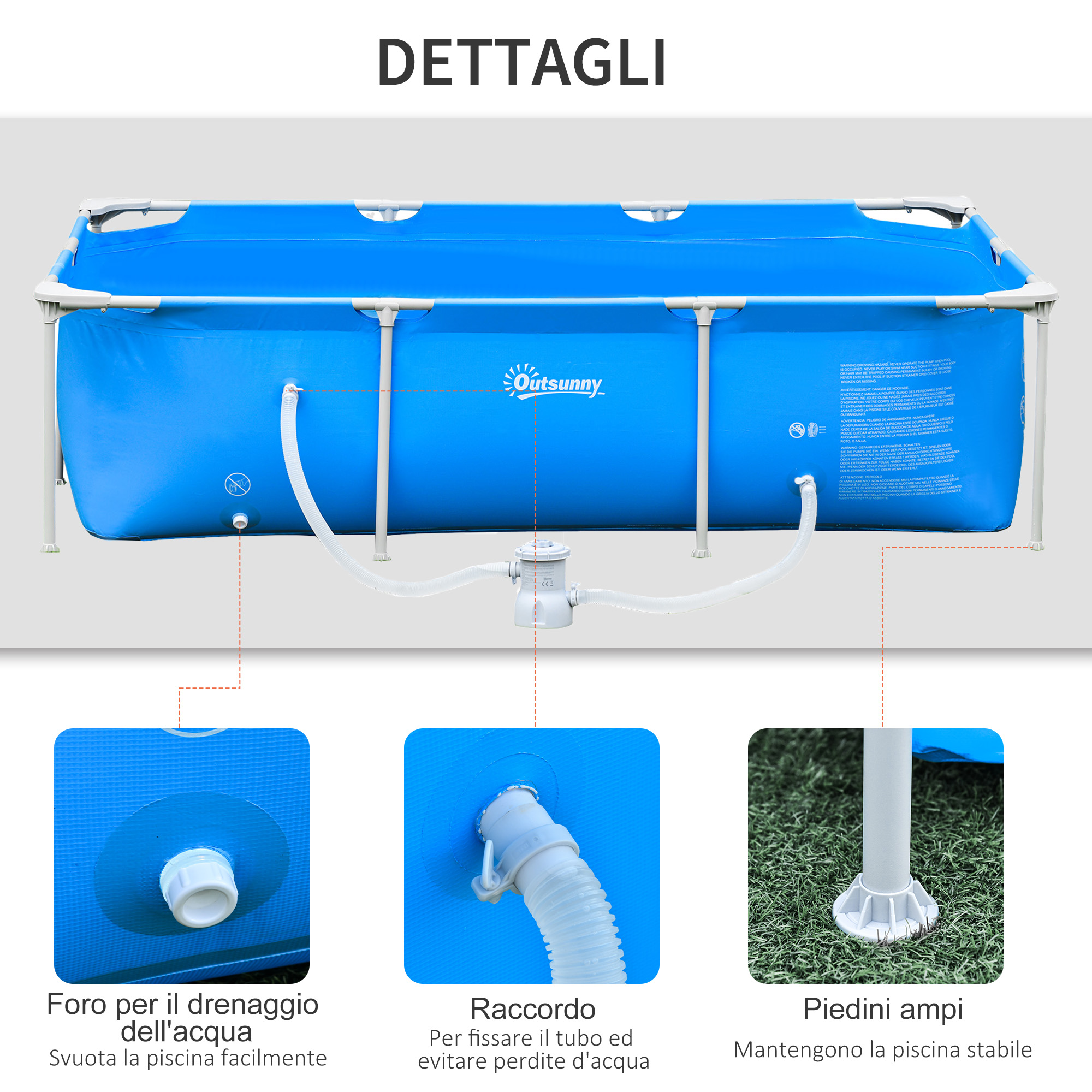 Piscina Autoportante da Esterno, Piscina Rettangolare Fuori Terra con Filtro e Valvola in Acciaio e PVC, Blu, 252x152x65cm