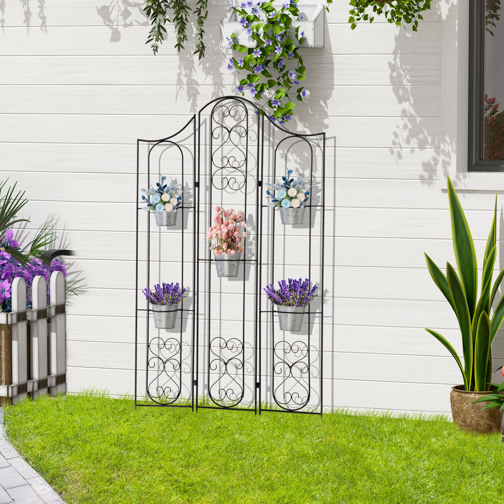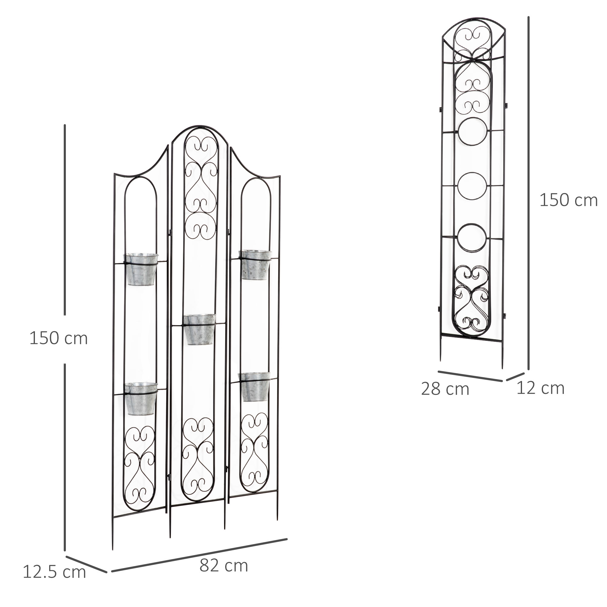 Portapiante Verticale Pieghevole con 5 Vasi da Esterno in Metallo, 82×12,5x150cm, Nero