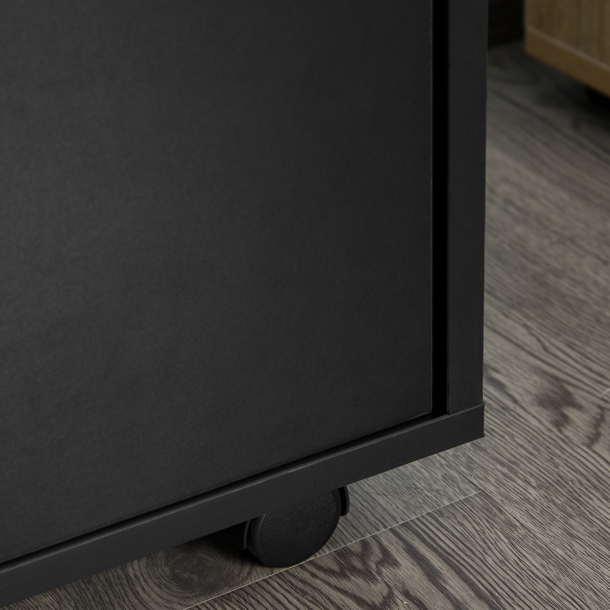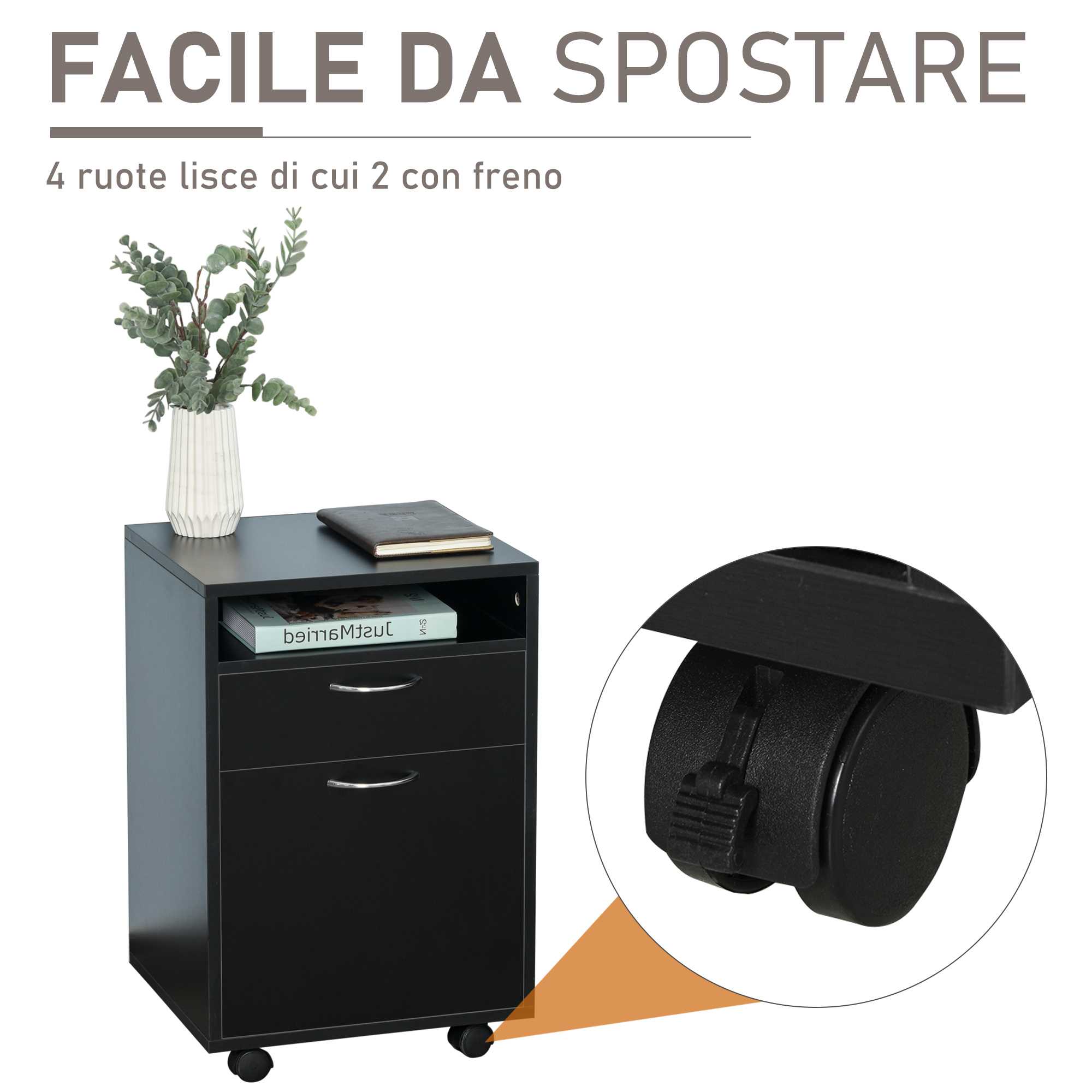 • • Cassettiera per ufficio con quattro ruote girevoli a 360°, di cui due con freno