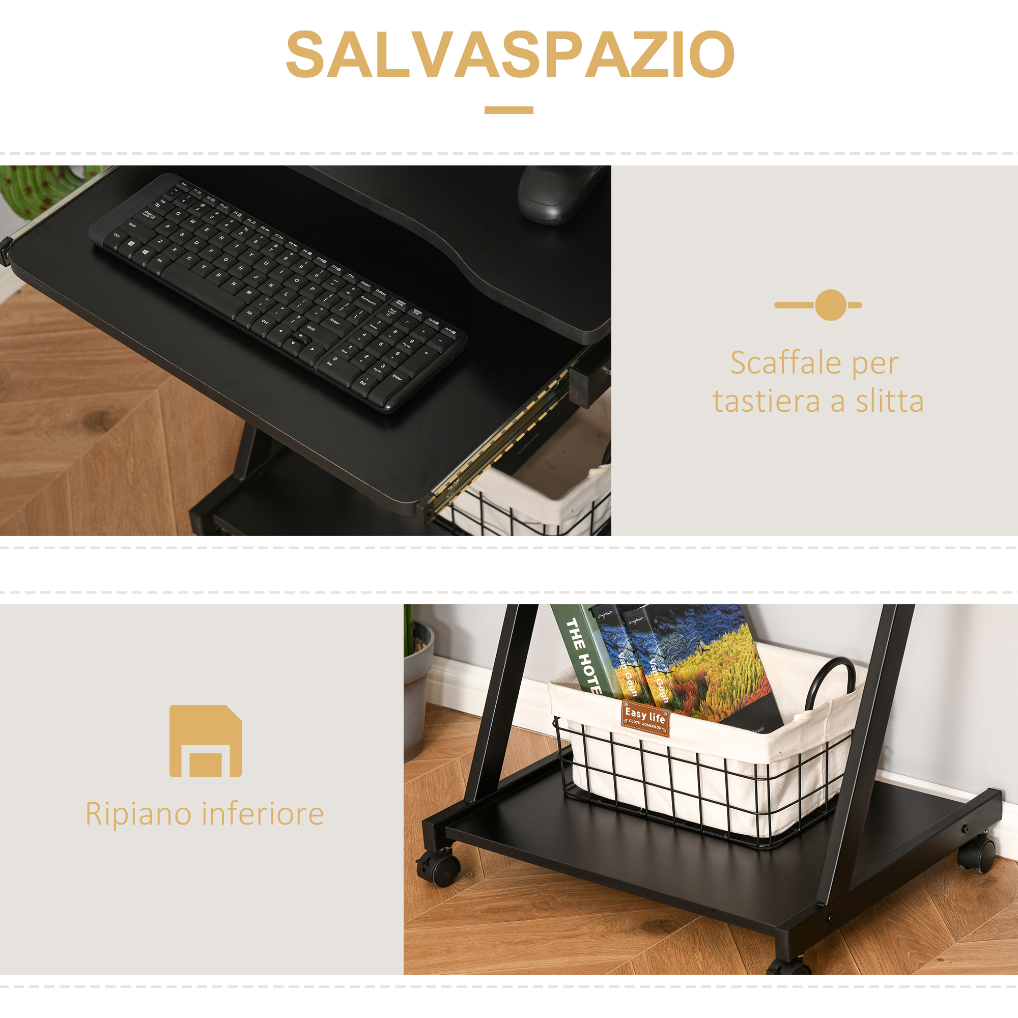 Scrivania Salvaspazio con Piano Tastiera a Scomparsa, 4 Ruote e Ripiano Inferiore, 60x48x73 cm, Nero