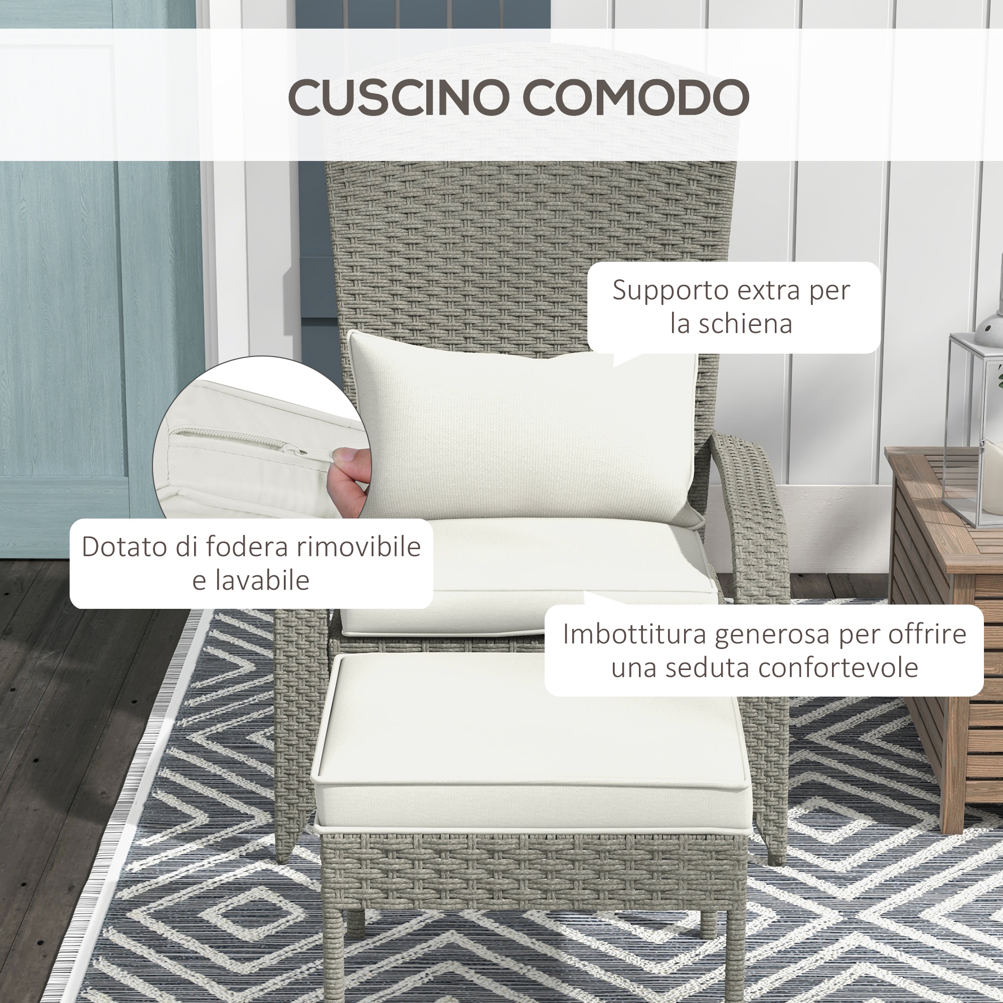 - • I morbidi cuscini imbottiti della sedia da giardino offrono una seduta confortevole