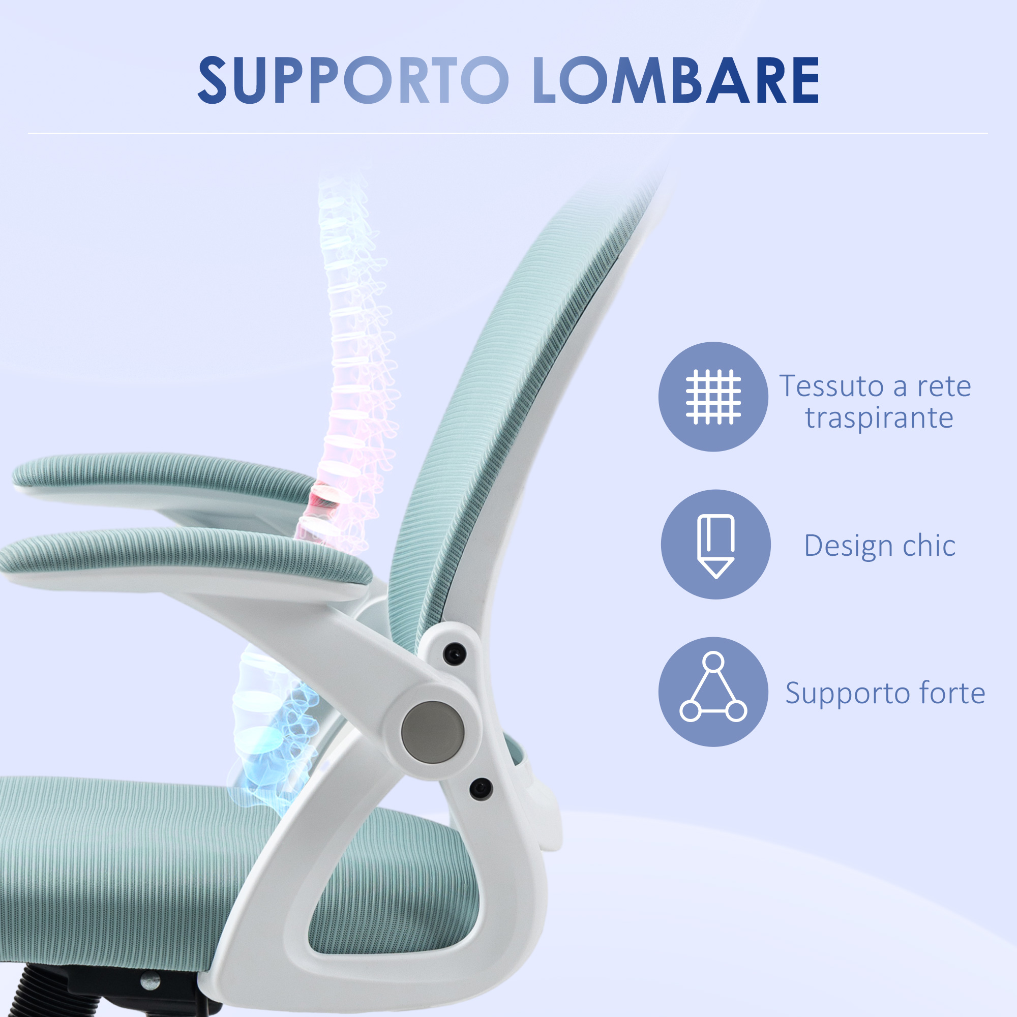 - • Schienale con supporto lombare in plastica
