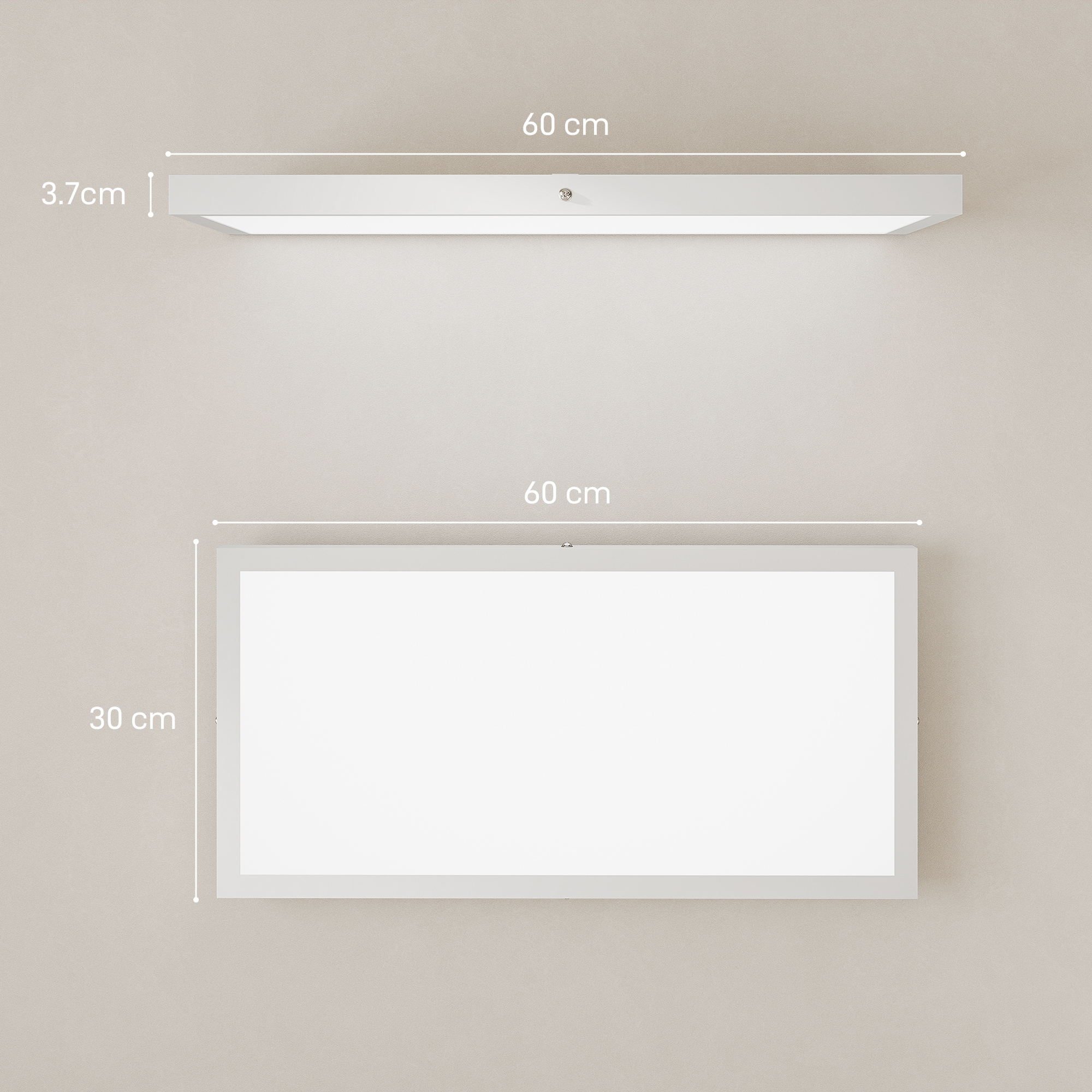 Set 2 Plafoniere LED Sottili e Minimal con Colore Regolabile, in Acciaio e Plastica, 60x30x3,7 cm, Bianco
