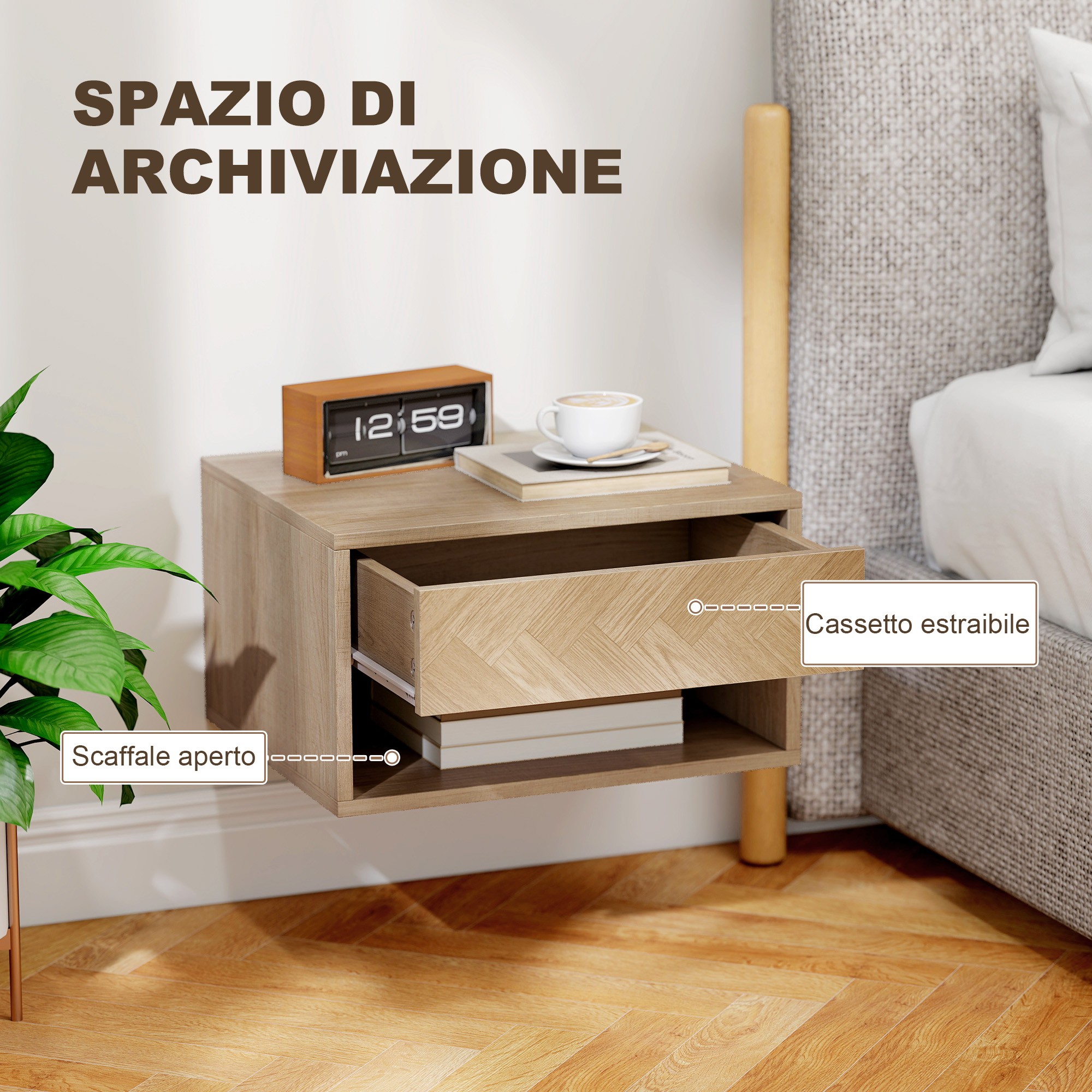 Set di 2 Comodini Sospesi Moderni con Cassetto e Vano Aperto, 37x32x21 cm, Legno Naturale