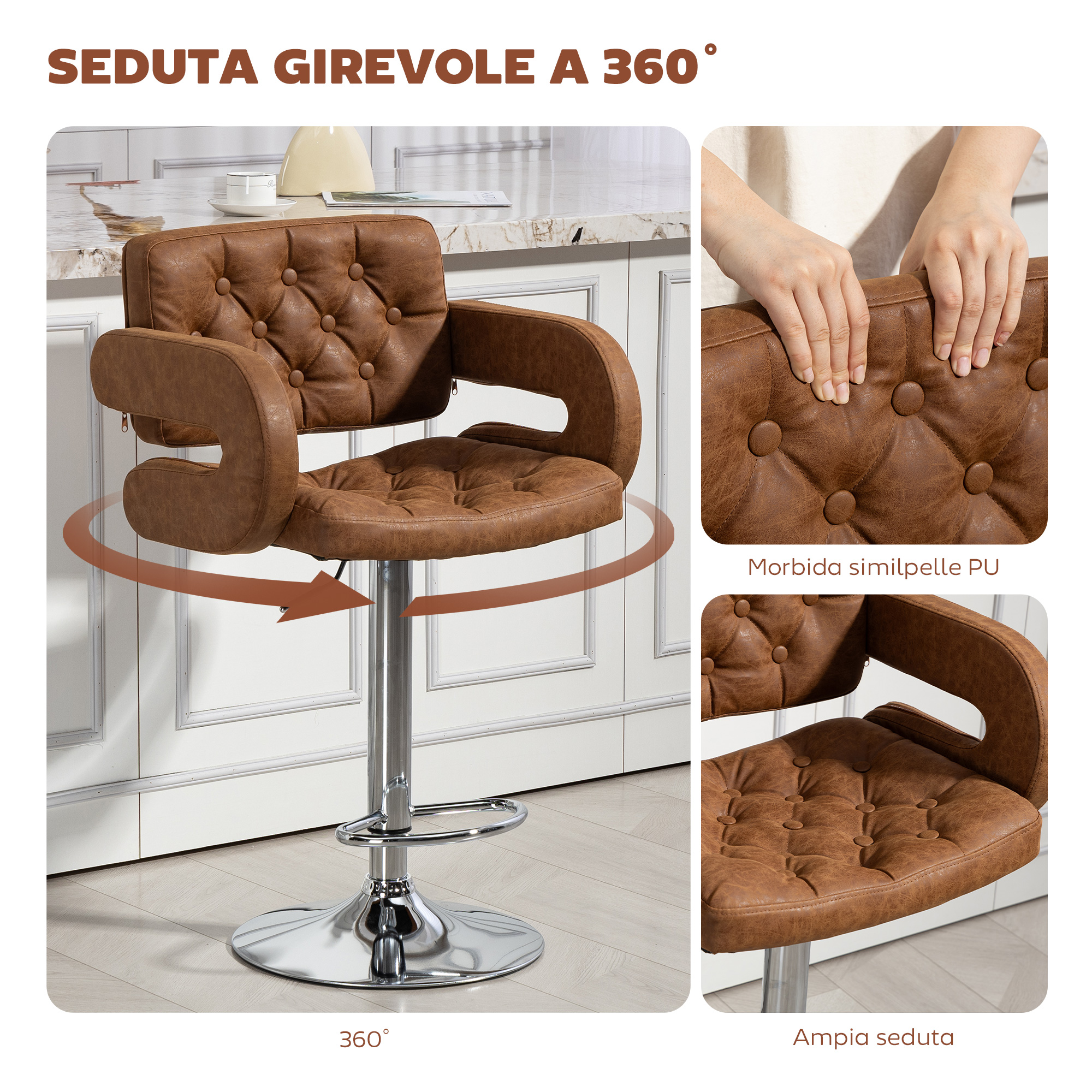 - • Seduta dello sgabello da cucina girevole a 360°