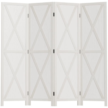 Paravento a 4 Ante per Interni, Divisorio in Legno per Camera e Ufficio, 182×170 cm, Bianco