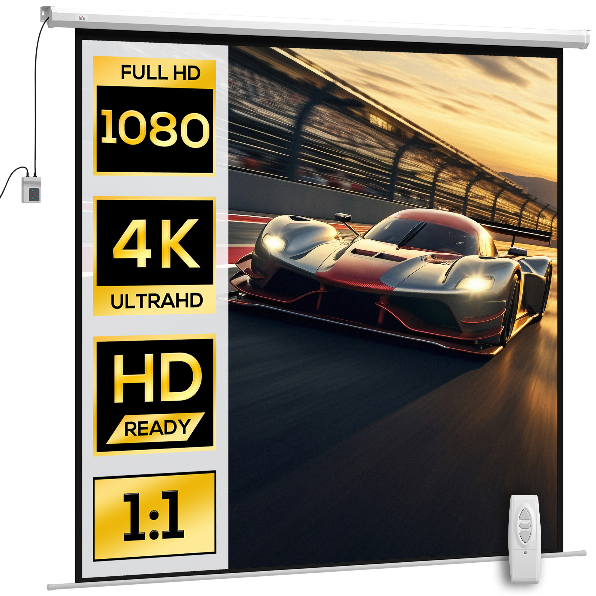 - • Telo per proiettore con rapporto d’aspetto 1:1 e diagonale di 120 pollici che migliora l’esperienza visiva
