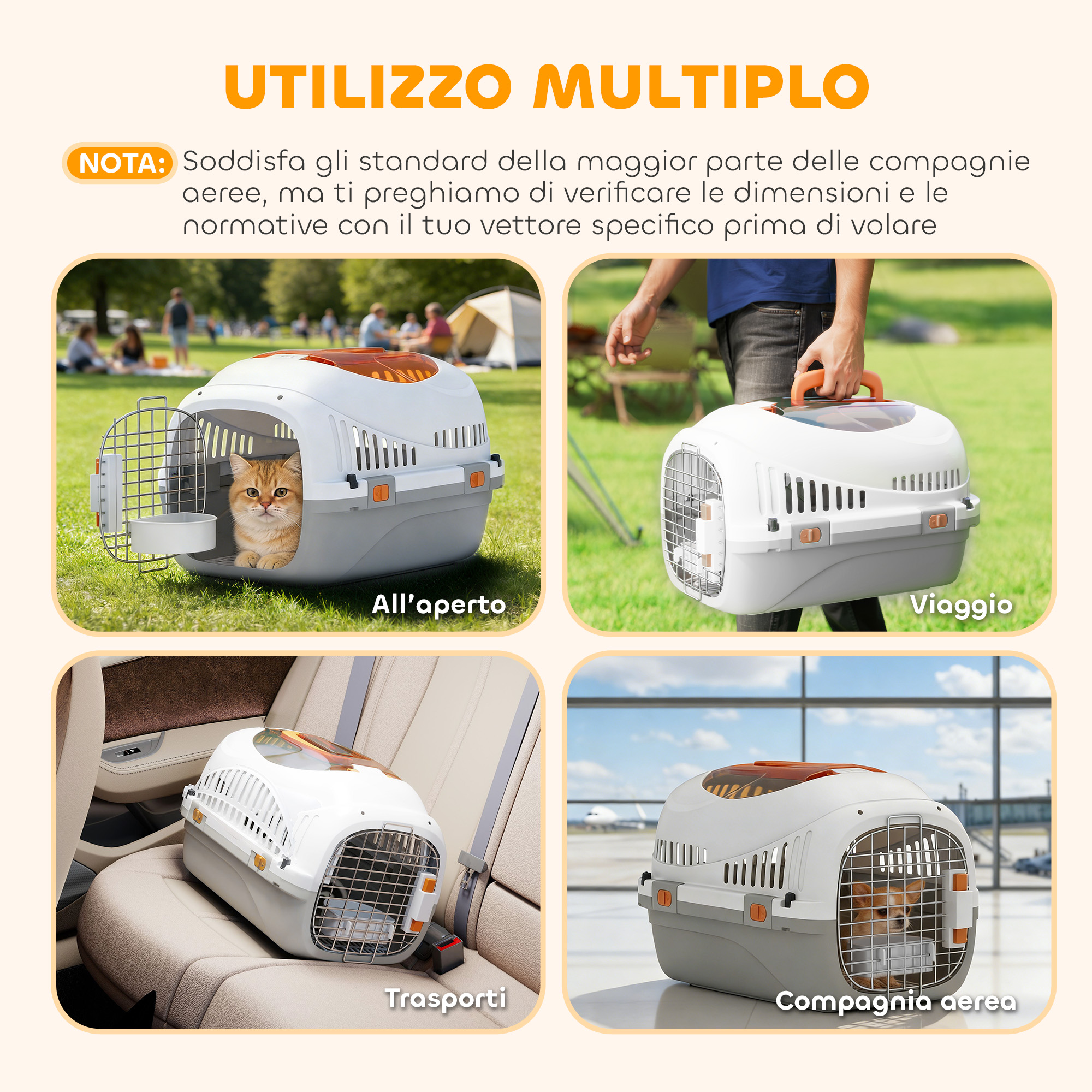 Trasportino per Gatti e Cani Piccoli Fino 4 kg in Plastica con Finestra Superiore, 49x32x31 cm, Grigio