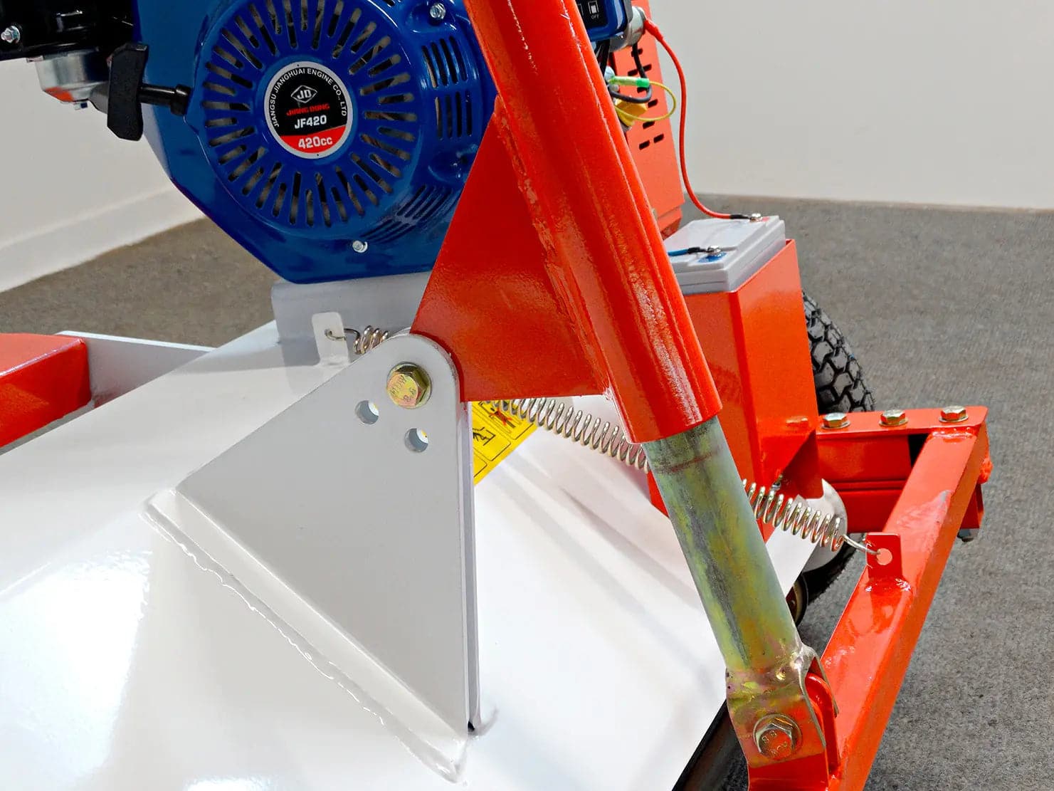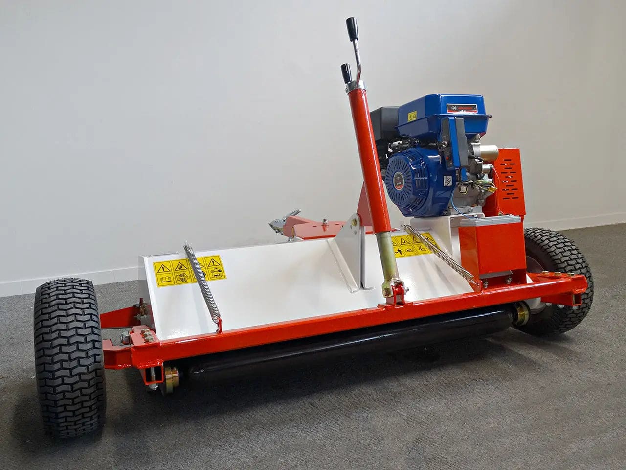 Il rotore, bilanciato elettronicamente, può essere equipaggiato con mazze o coltelli a “Y” per adattarsi ai diversi tipi di taglio. L’altezza di taglio è regolabile tramite il rullo posteriore, che si può alzare o abbassare facilmente. Anche l’altezza delle ruote si può modificare con la maniglia dedicata