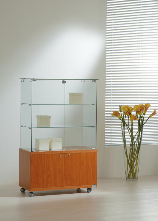 VETRINA Top Cristallo Temperato 5MM con Mobile (h 43 cm) in Kit, Base in legno colore ciliegio, grigio o weng� a scelta, vetrina senza luci, vetrina h.130 cm vetrina profondit� cm 40. 2 ripiani fissi a 33 cm di distanza.