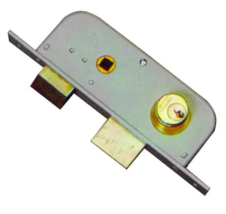 Serratura da impennata. 2 mandate e scrocco, catenaccio mm. 25, cilindro fisso, quadro maniglia, 3 chiavi, scatola mm. 57×150.
