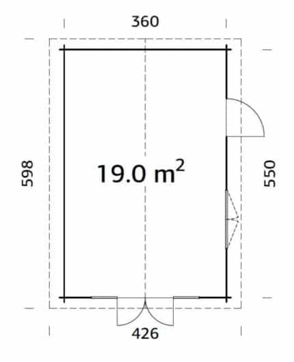 Casetta da Giardino in Legno d’ Abete Nordico(44mm) – 360x550cm