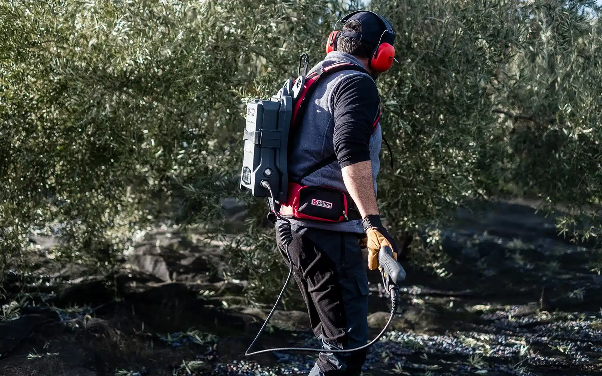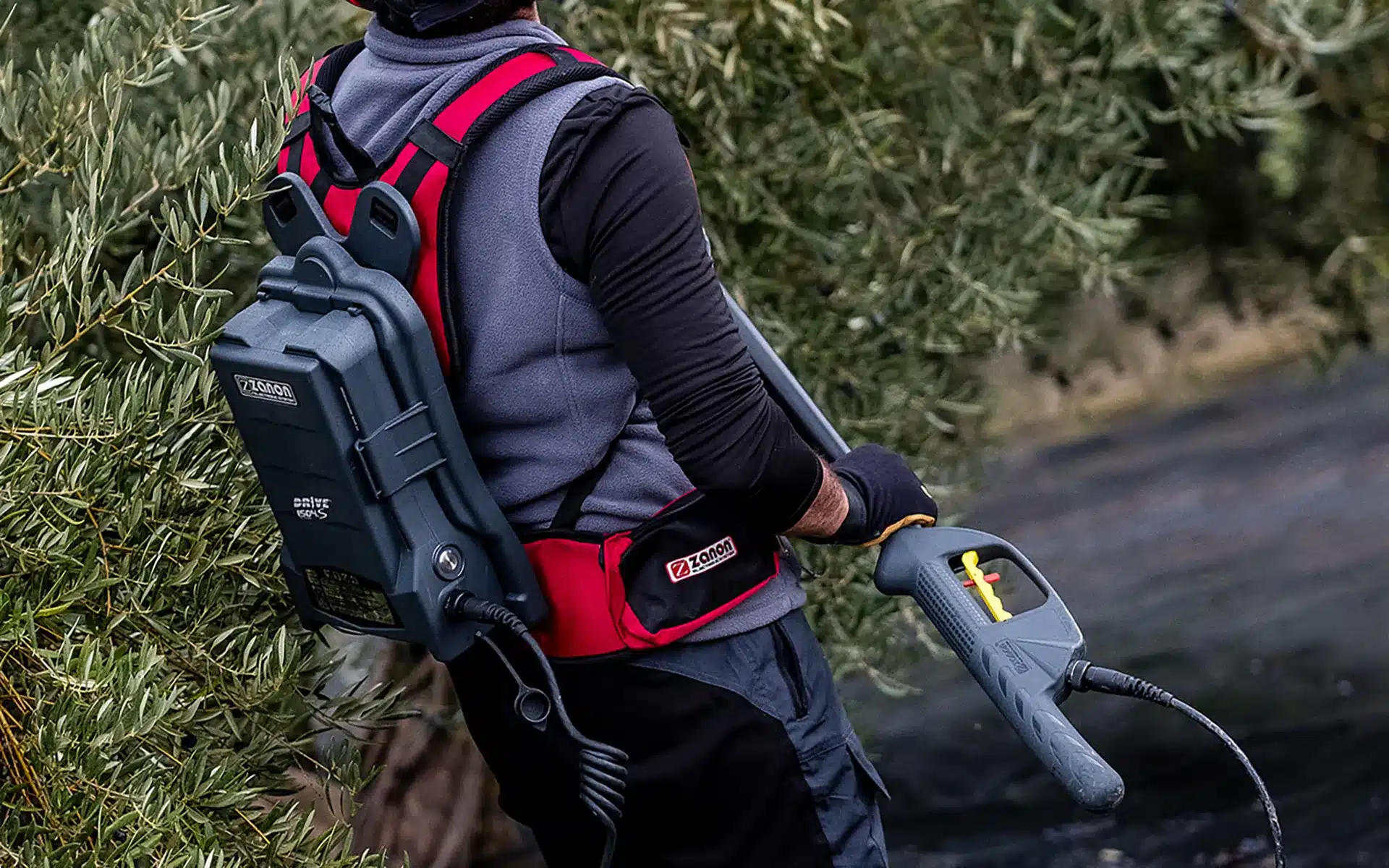 L’attacco della batteria è creato con un materiale viscoelastico flessibile, ventilato e leggero che protegge sia la schiena da eventuali cadute sia la batteria dagli urti. È fissato allo zaino con un perno centrale basculante che ruota in modo da distribuire il peso dei movimenti della batteria in modo equo sulle spalle e sulla schiena.